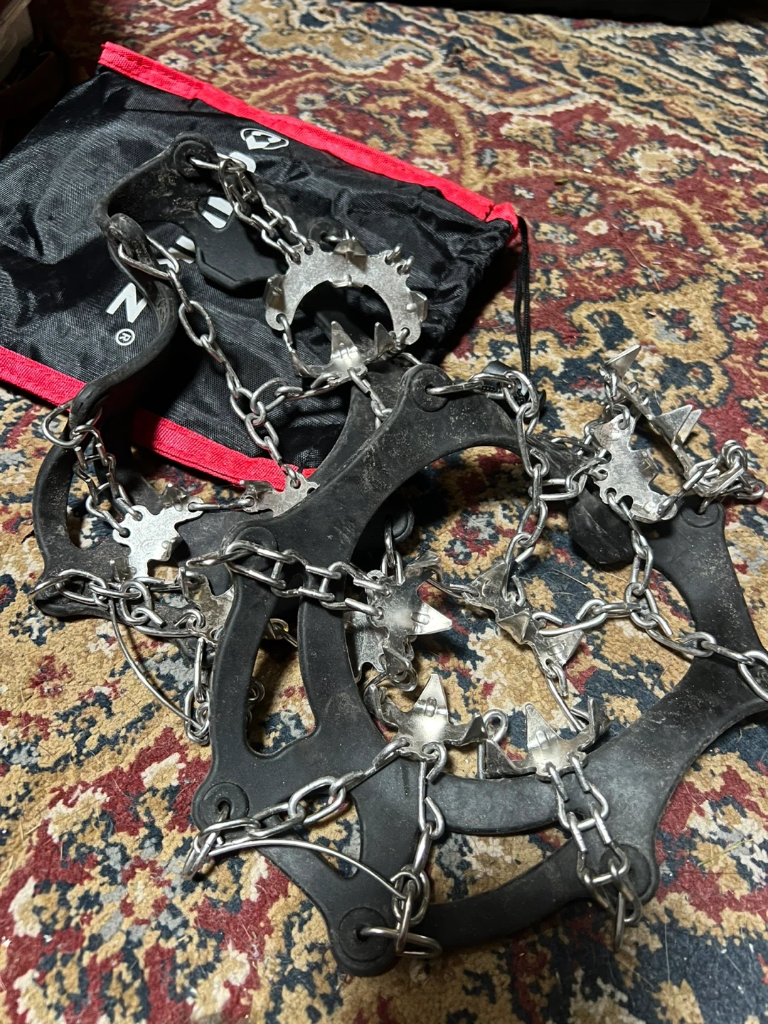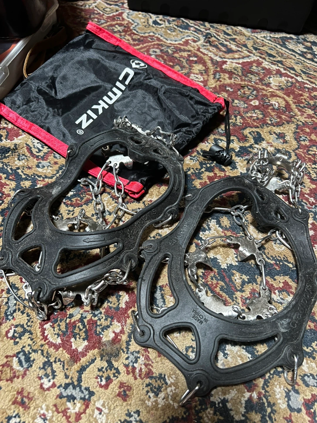Get ready for winter with these Cimkiz ice cleats! They provide great traction on snow and ice. These are size M and come with a convenient carrying bag.