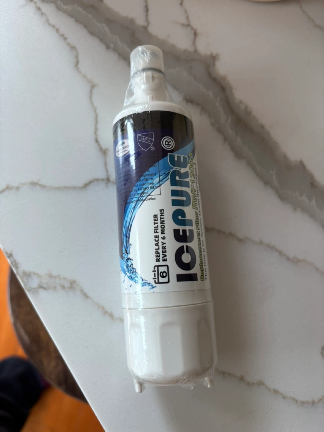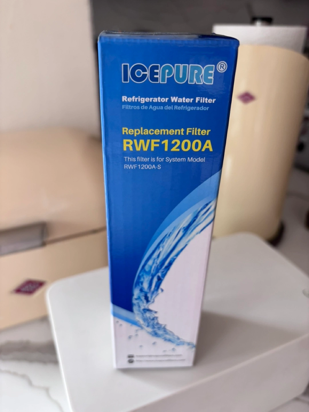 New IcePure refrigerator water filter. Model RWF1200A. Compatible with RWF1200A systems. Replace every 6 months.