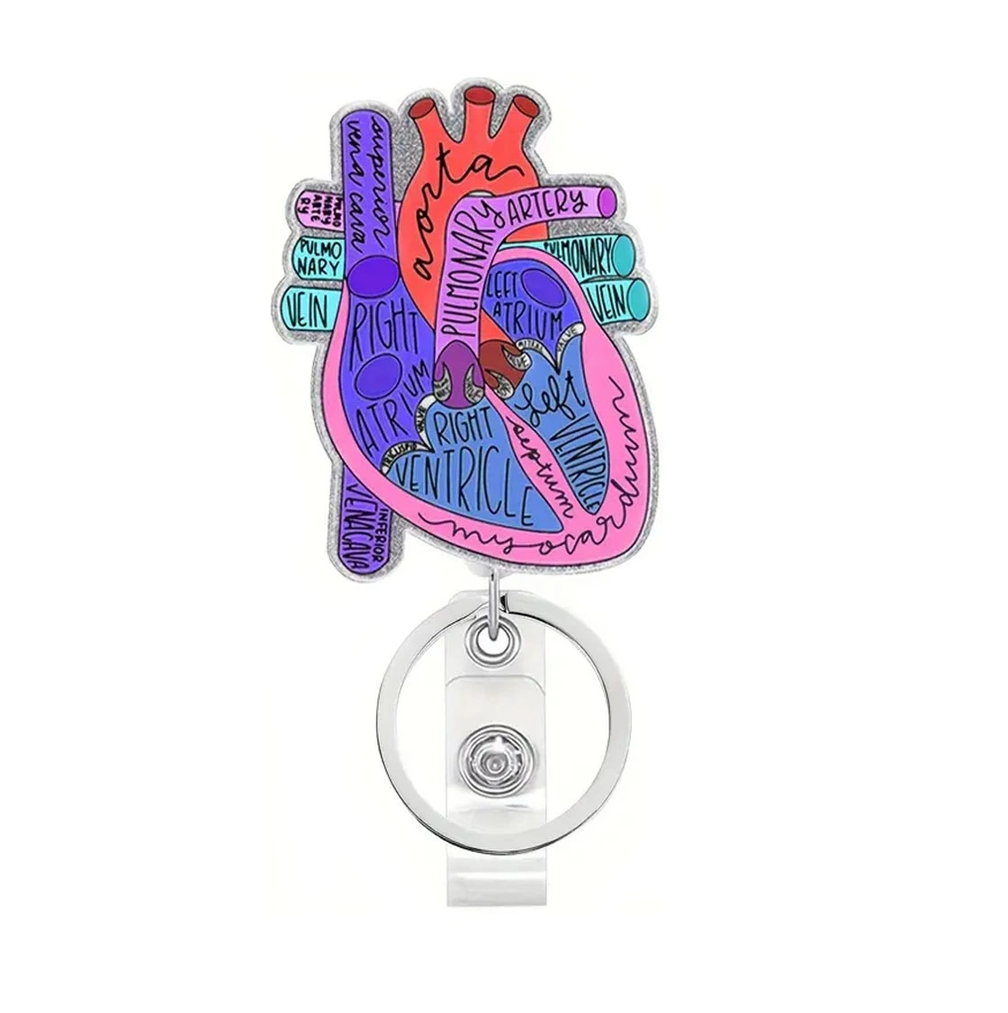 Each item is SOLD SEPARATELY. Please choose from the following options: A - Orange Bottom B - Pink Bottom -Heart anatomy labels to help you remember what matters most -Elastic and retractable -Multipurpose holder for ID, keys, fob, cards, alarms, pens, phones -New, never used, no scratches