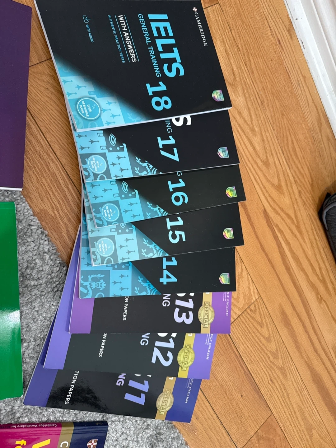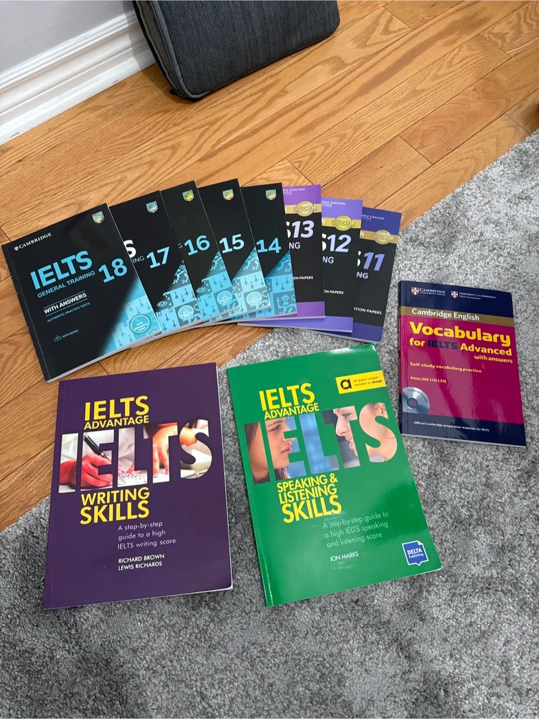 Selling a collection of IELTS preparation books! Includes Cambridge English Vocabulary for IELTS Advanced, IELTS Advantage Speaking & Listening Skills, IELTS Advantage Writing Skills, and a set of IELTS General Training books from 11 to 18. Great for anyone preparing for the IELTS exam