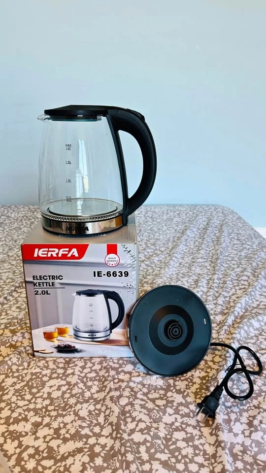 This is a high-quality electric kettle from IERFA, designed to meet all your hot beverage needs quickly and efficiently. Product Features: · 2.0L Capacity: Perfect for family use and offices · Safety Assurance System: Automatic shut-off and temperature control · Fast Boiling: Heats water in just minutes · Premium Materials: Made from food-grade plastic and stainless steel · User-Friendly Design: Ergonomic and easy to handle · Energy Efficient: Low power consumption Technical Specifications: · Model: IE-6639 · Power: 220-240V · Wattage: 1850-2200W · Manufacturing Standards: International quality Ideal For: · Household use · Office environments · Hotels and restaurants · Travel and picnic occasions This electric kettle is the perfect choice for anyone seeking a safe, fast, and reliable appliance for preparing hot beverages.