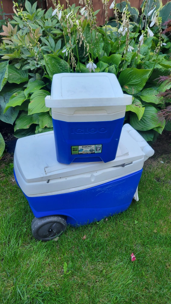 Blue Smaller cooler like new-$10 Big on wheels blue cooler -$30