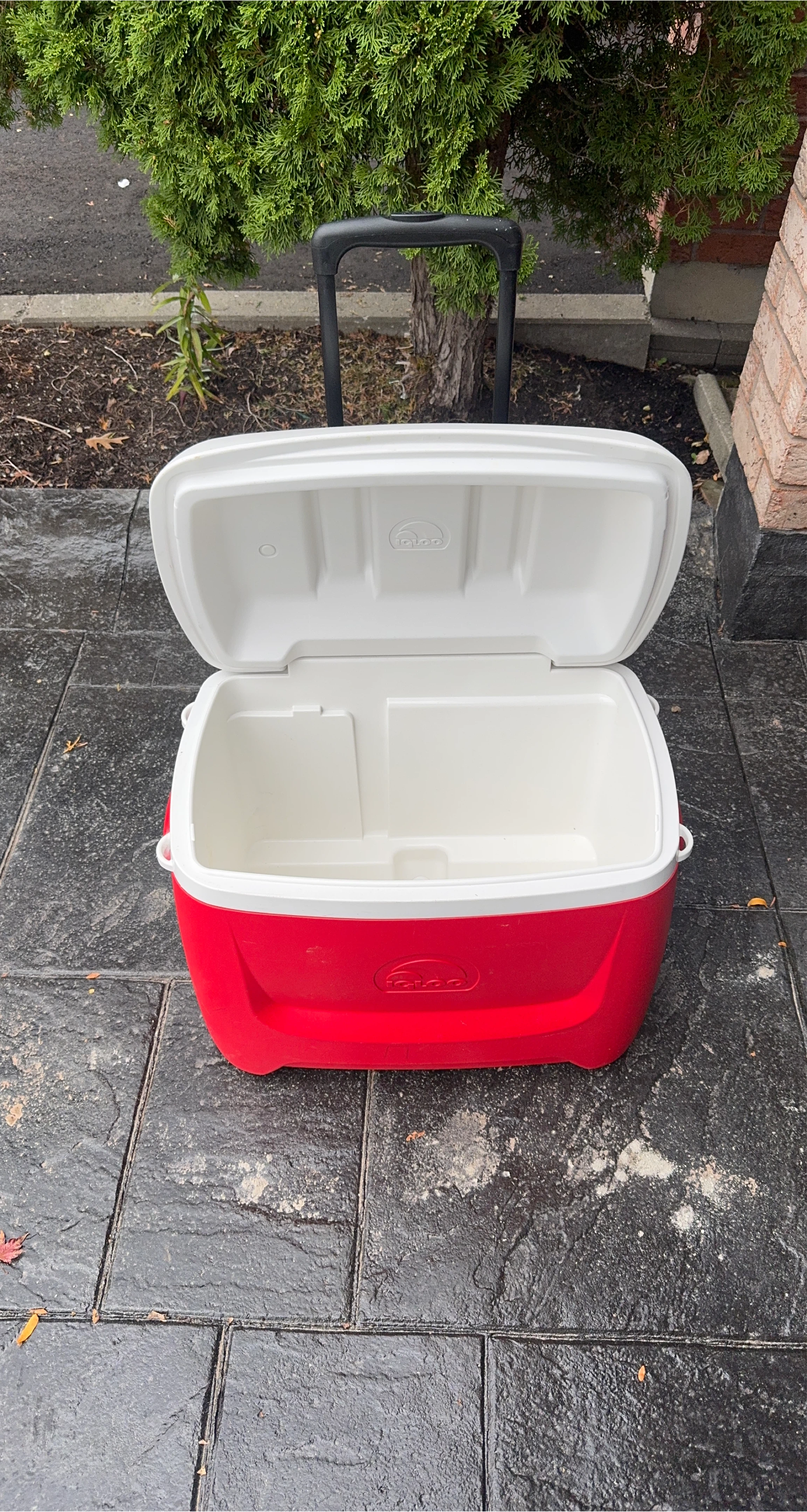 Selling a red and white Igloo cooler with wheels!
