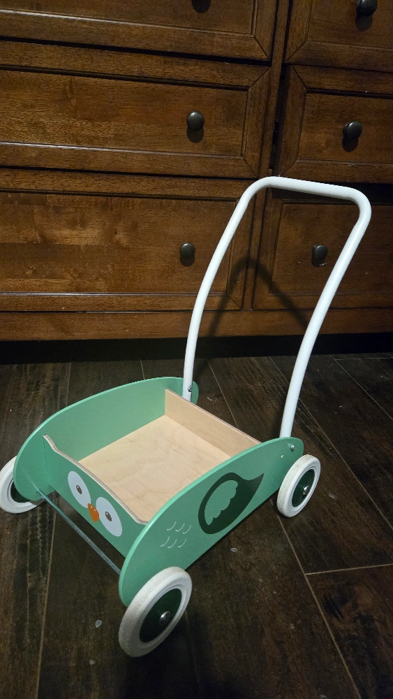 Selling an IKEA baby walker in great condition! It's perfect for little ones learning to walk. The wooden frame and wheels are sturdy and safe, and the cute owl design adds a touch of fun.