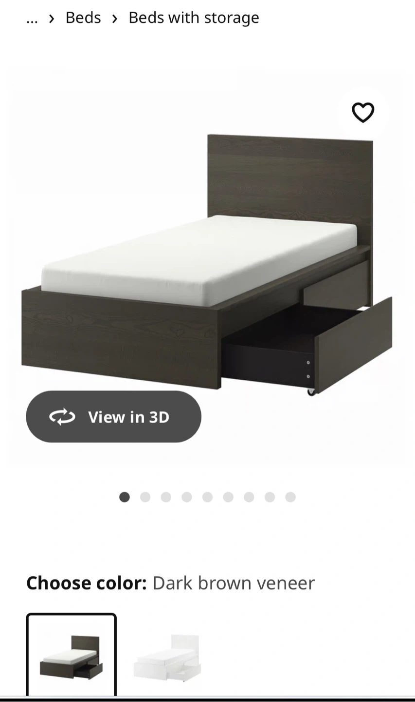 š§”Looking to sell this bed with storage. It's in dark brown veneer and has handy drawers underneath for extra storage. Perfect for decluttering your space! It looks black to me. š¤·āāļø itās dark. Iāll post proper pictures as soon as I can. this bed is already dismantled and ready to be picked up. Mattress not included. Instruction manual included. Cash only, no exceptions. Smoke free house.