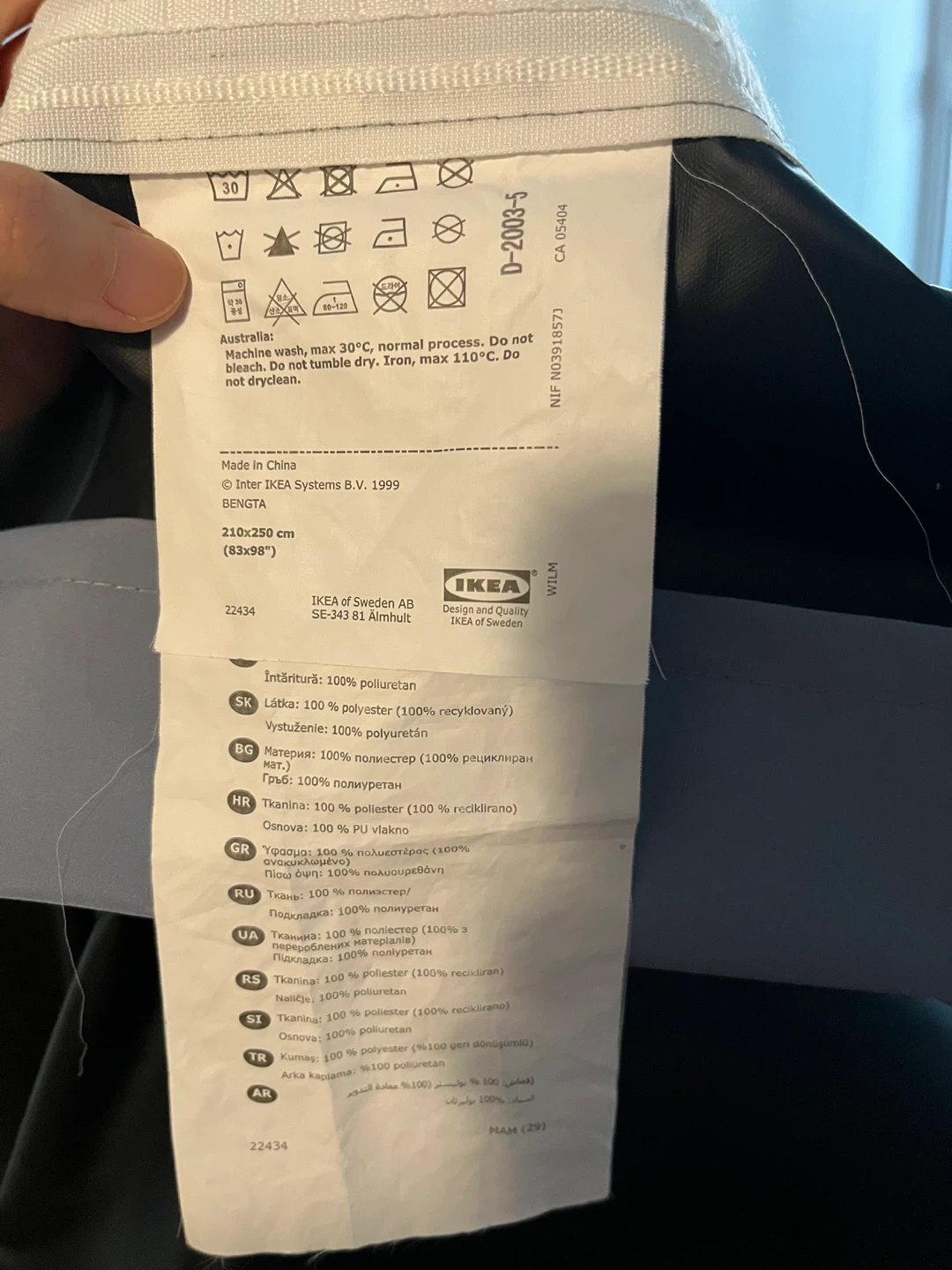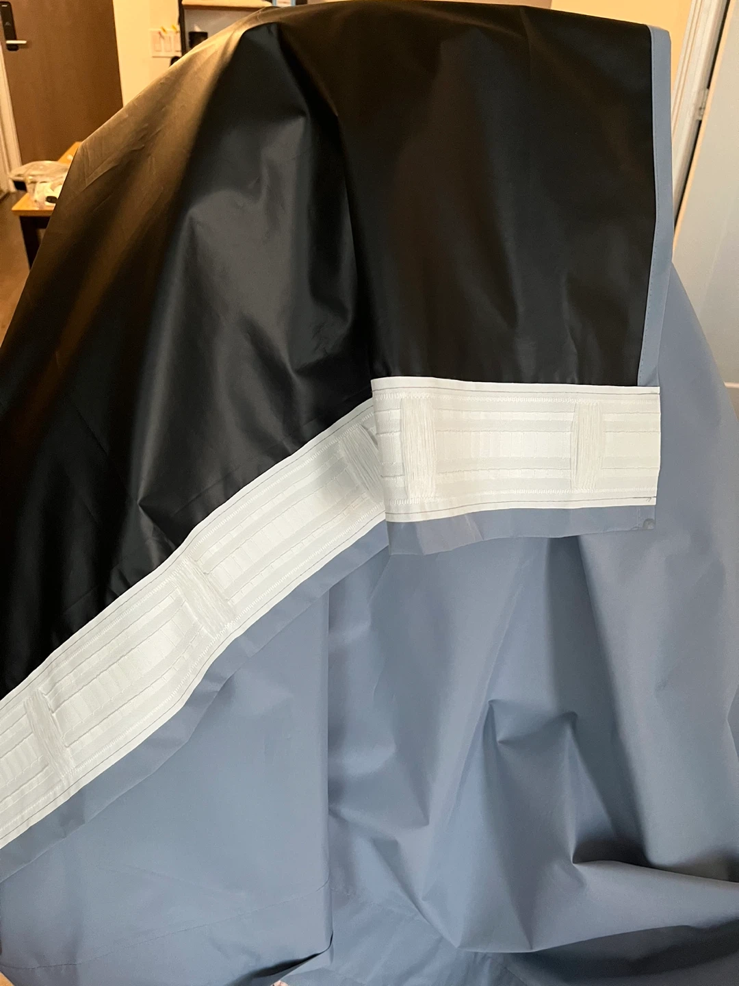 Selling one piece of IKEA blackout curtain in frosted blue. They measure 210-250cm. The material is 100% polyester. Comes with the curtain rings (originally not included) Used for about 2 years, but still in a good condition https://www.ikea.com/ca/en/p/bengta-black-out-curtain-1-piece-beige-with-heading-tape-20602137/