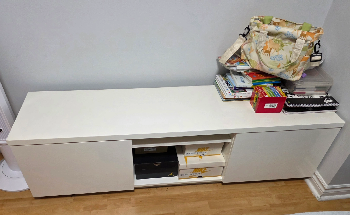 Selling a white IKEA BESTA TV stand. It's in great shape and ready for a new home. Perfect for organizing your media and adding a clean look to your living room https://www.ikea.com/ca/en/p/byas-tv-bench-high-gloss-white-00565782/?utm_source=google&utm_medium=organic-shopping&utm_campaign=shopping_feed&utm_content=free_google_shopping_clicks_Storeandorganisefurniture&gad_source=1&gad_campaignid=21057328983&gbraid=0AAAAACqC6Eoz2p8TtGLFZZMyYvGaQ-Hnn&gclid=CjwKCAjwlt7GBhAvEiwAKal0cmNfFH3RtIJtTPxFk40PE4kJr70uxX-PX6YFMpnRS_tBPX-sWbCZRRoC89wQAvD_BwE