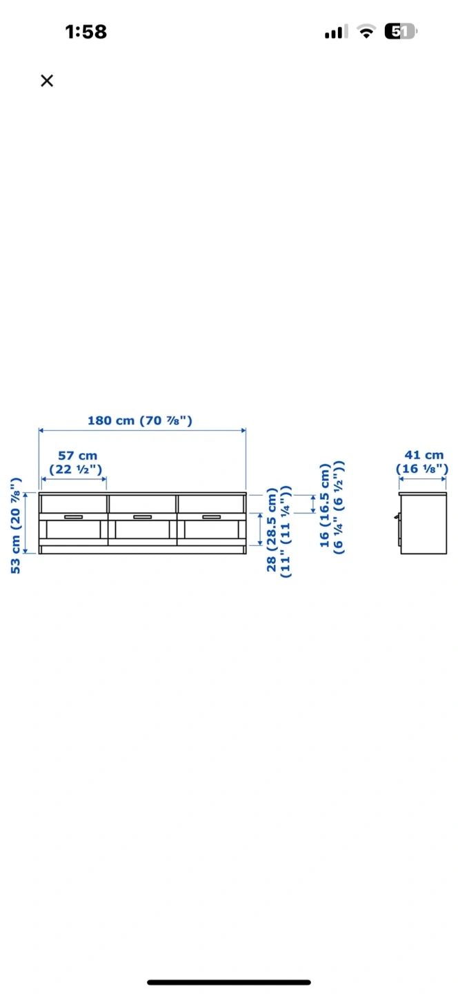 Selling a white IKEA Besta TV stand. It's in great shape and ready for a new home! The dimensions are approximately 180 cm (70 7/8") in length, 41 cm (16 1/8") in depth, and 53 cm (20 7/8") in height. Perfect for organizing your entertainment area! Pickup is from first floor (it’s a townhouse - it’s a bit heavy so you would need 2 people). Pickup is near Gauri Shankar Mandir, Brampton