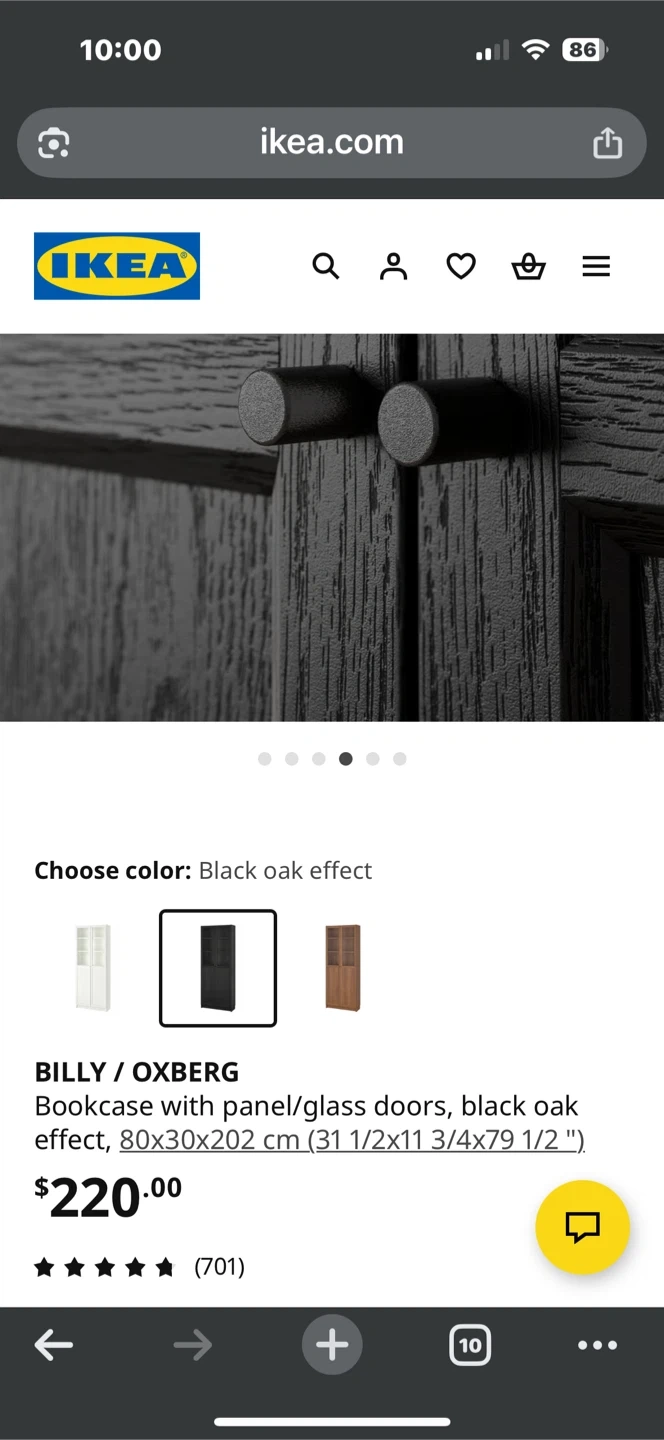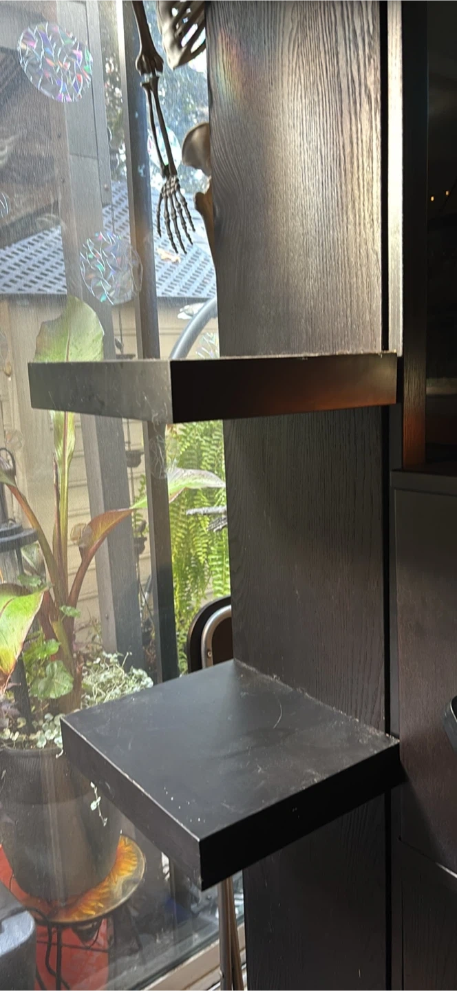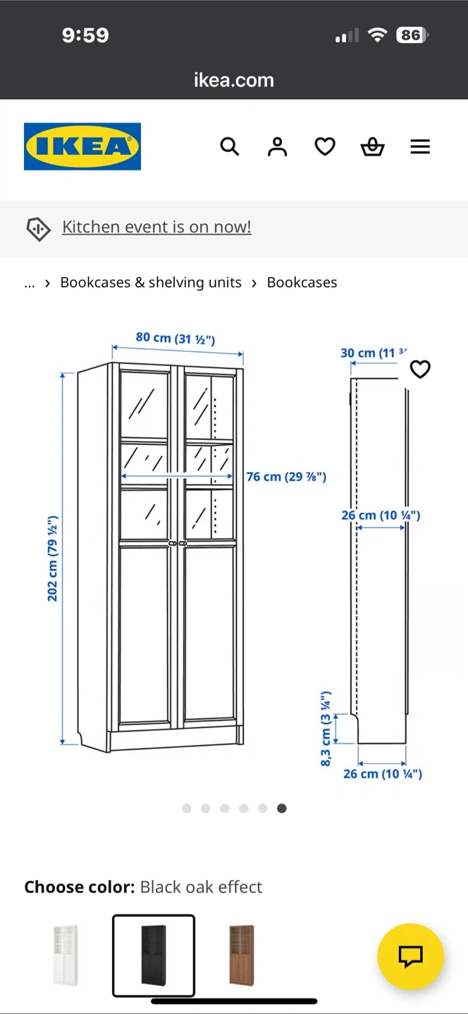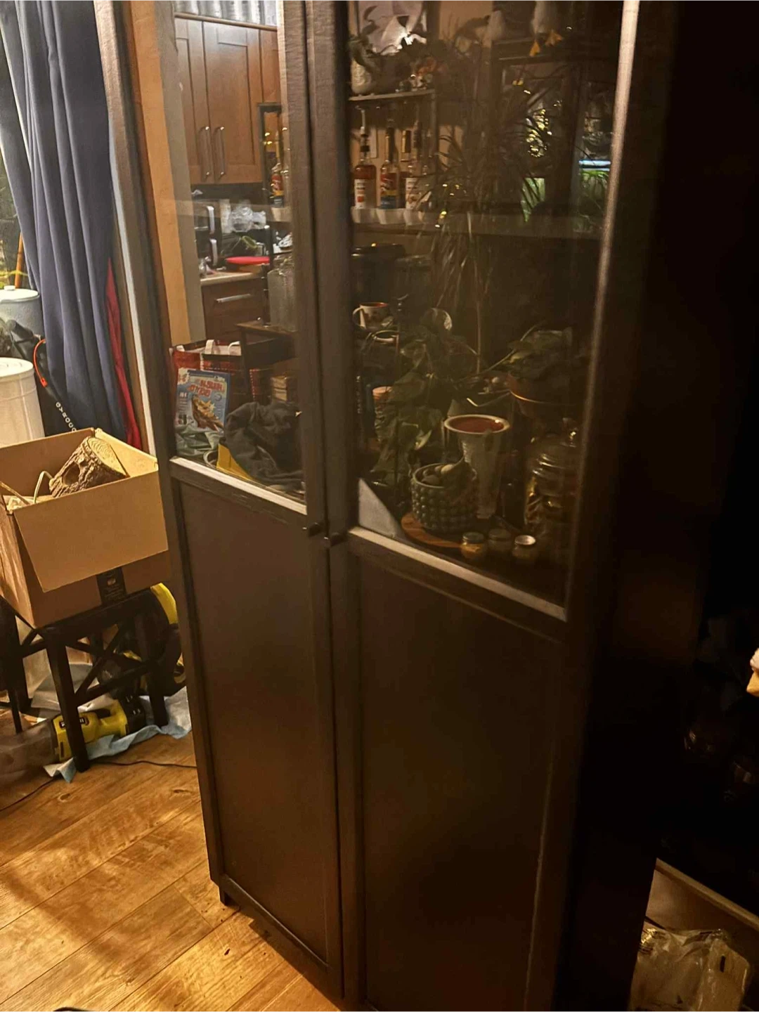 Selling an IKEA Billy / Oxberg bookcase in black oak effect! It's in good condition and perfect for displaying your favourite books or collectibles. Dimensions are 80x30x202 cm (31 1/2x11 3/4x79 1/2 "). Originally bought for $220