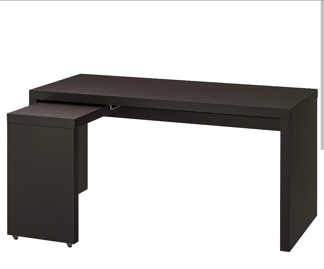Selling an Ikea desk in black. It features a pull-out side table for extra workspace. It is pretty well kept and looks like new. I will share the pictures if you are interested in buying it Table:151×73x65 cms pull out: 40x40x60 cms