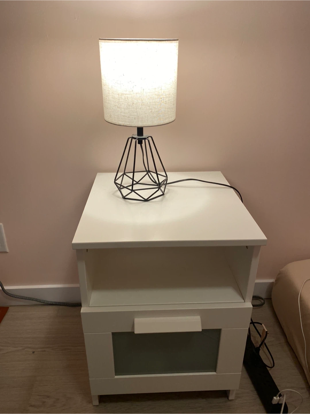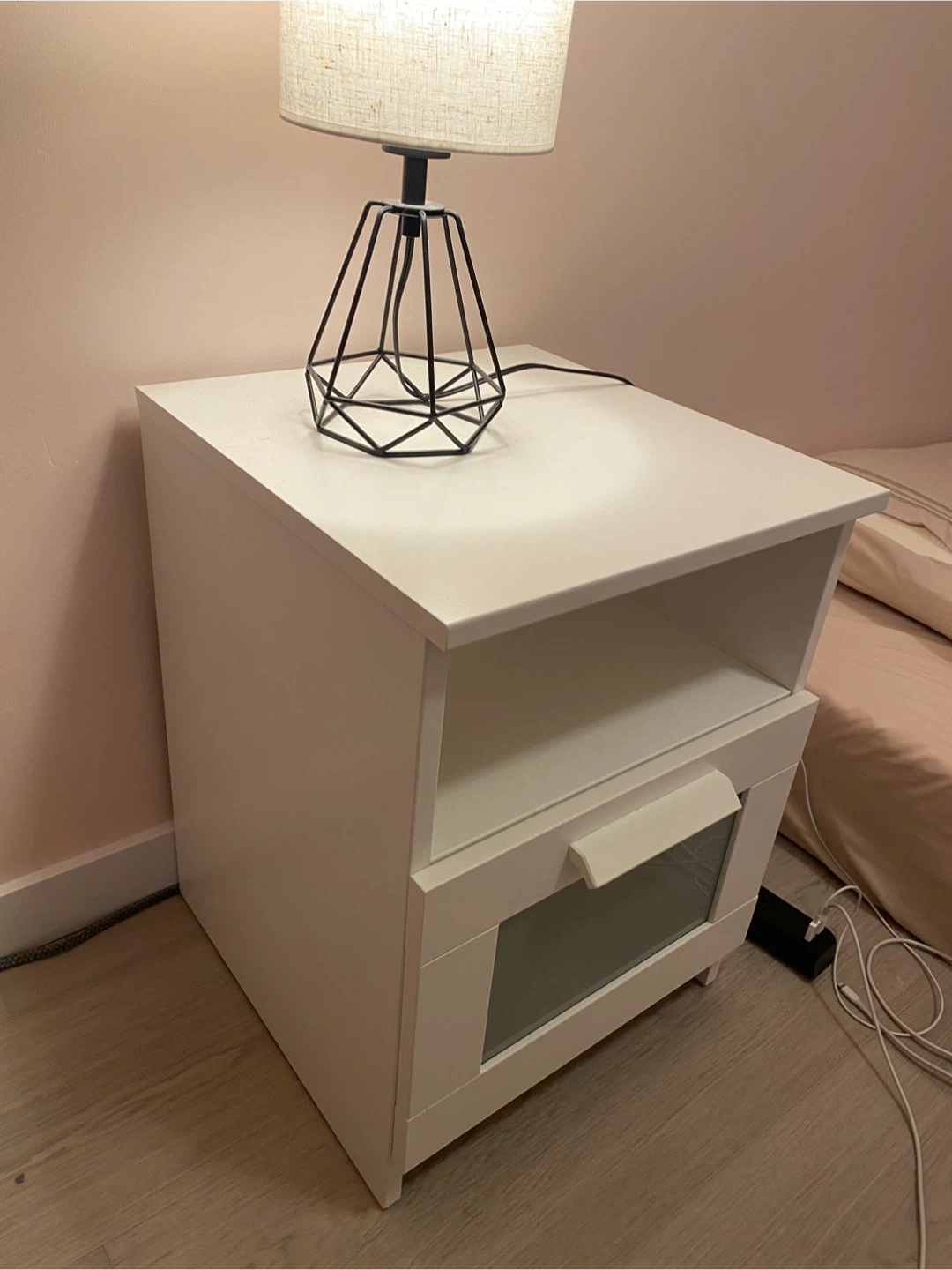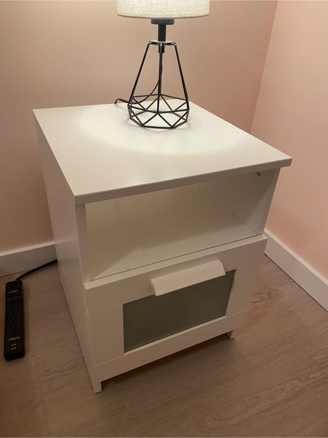 Selling a PAIR of white Brimnes nightstand from IKEA! It's in great shape and has a handy drawer and open shelf for storage. The dimensions are 39x41 cm (15 3/8x16 1/4") $80 for the pair