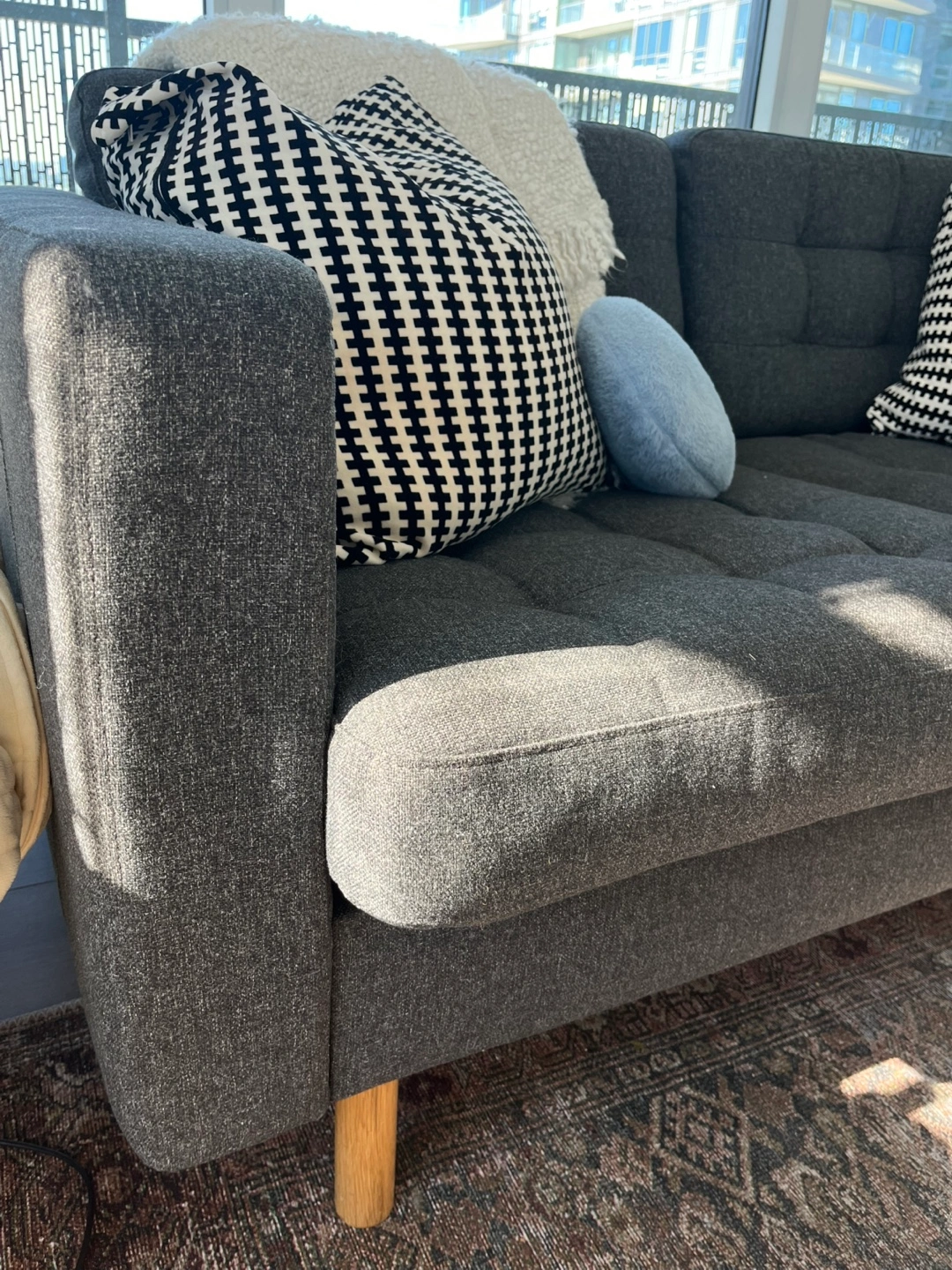 Selling a gently used IKEA Morabo sofa in Gunnared dark grey. It's in great shape and super comfy! This sofa would be a great addition to any living room. The model is Morabo.