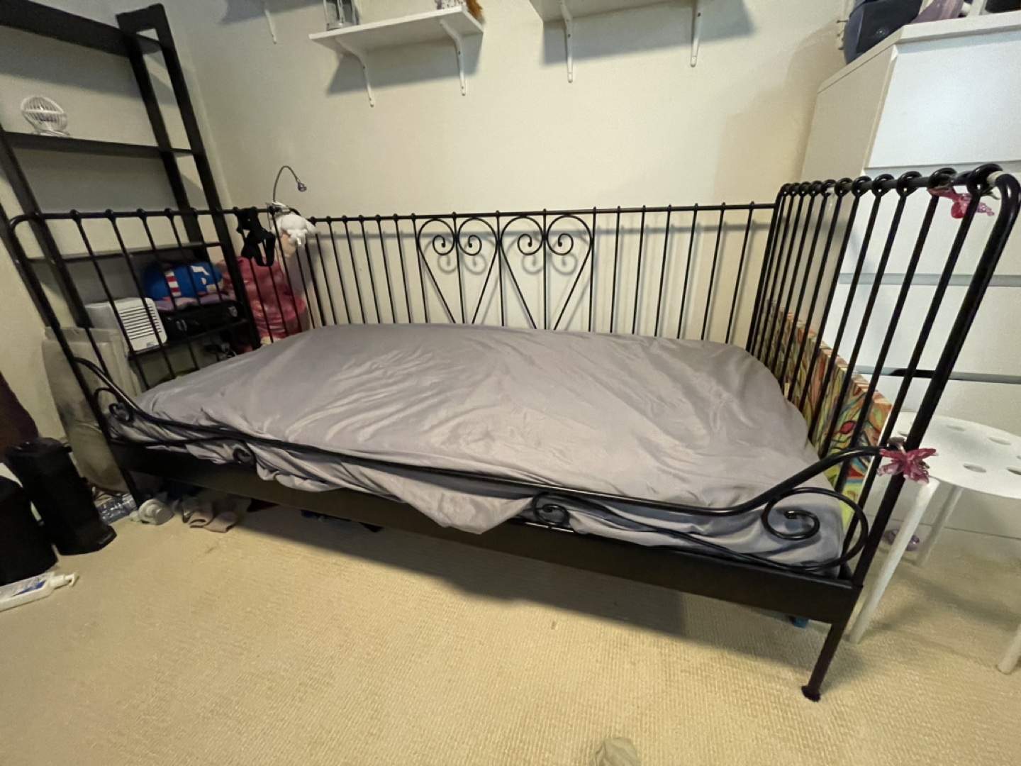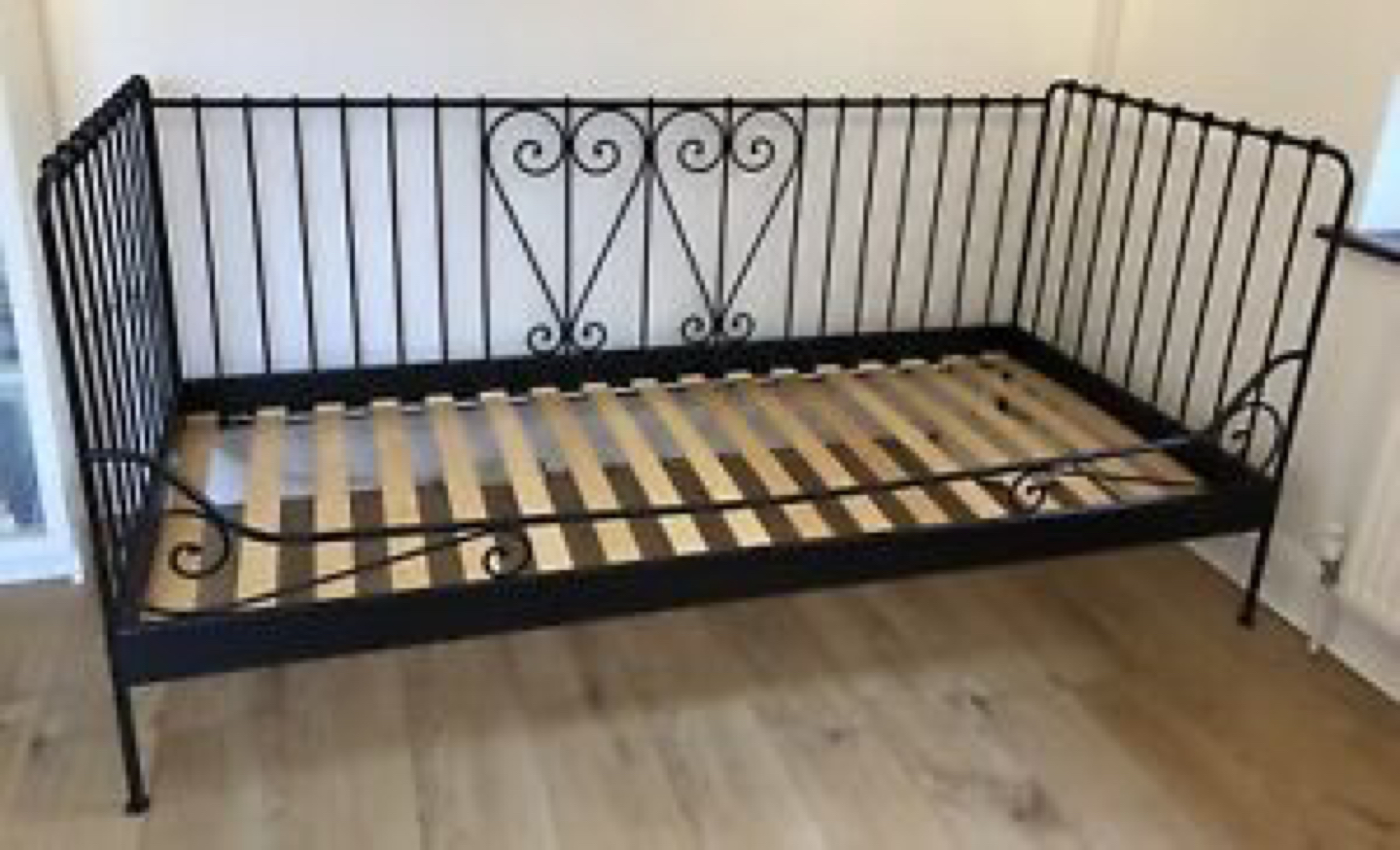 Great condition Ikea Meldal Daybed + Mattress Black iron, 2 hearts pattern. + bonus under bed storage Has been disassembled. Reason of selling: redecorating Here is the manual: https://usermanual.wiki/Ikea/IkeaMeldalDaybedFrameTwinAssemblyInstruction.1000225403