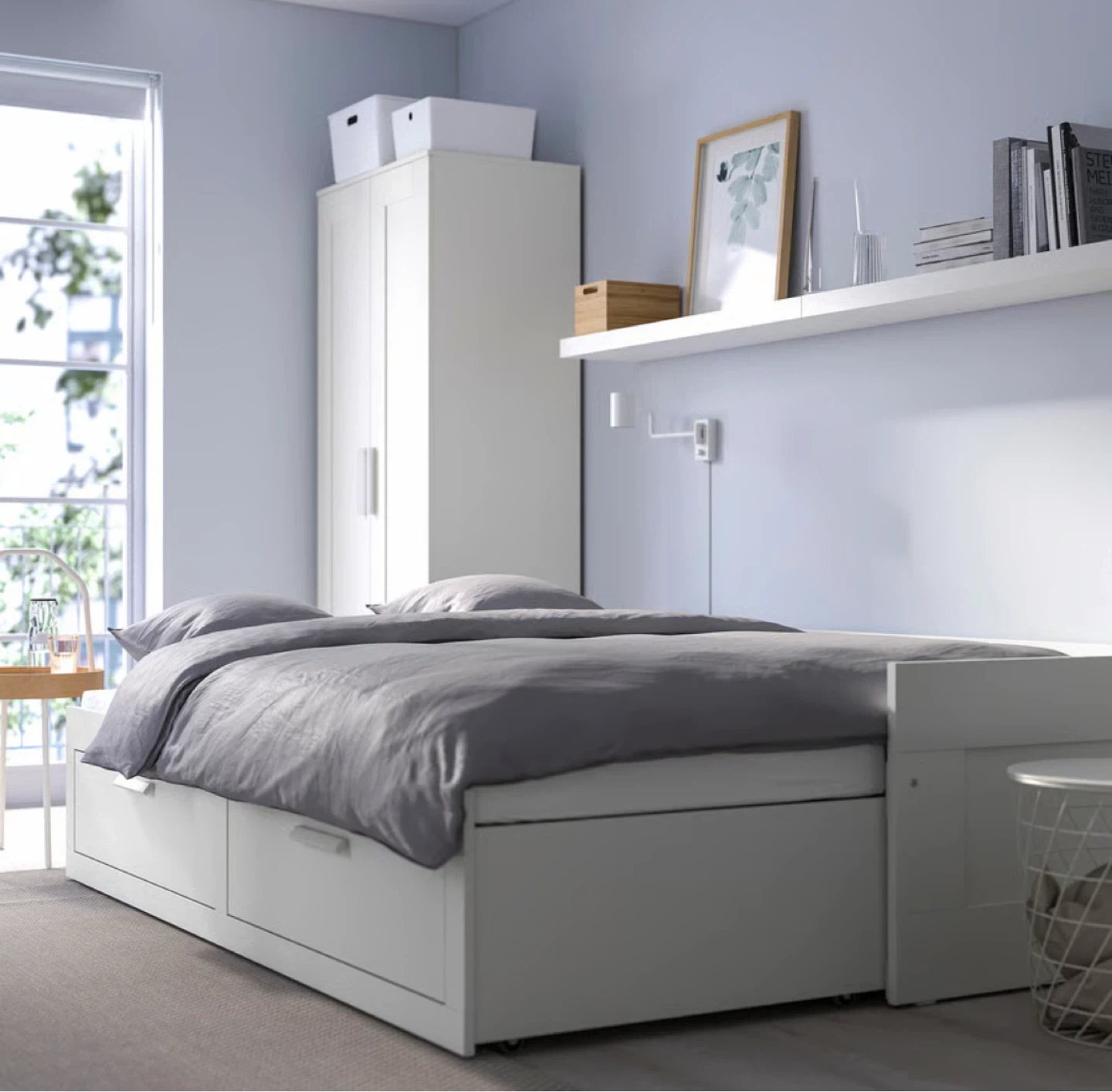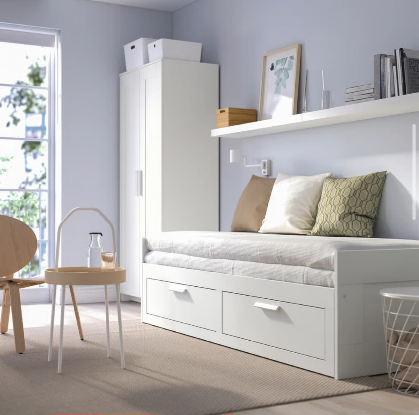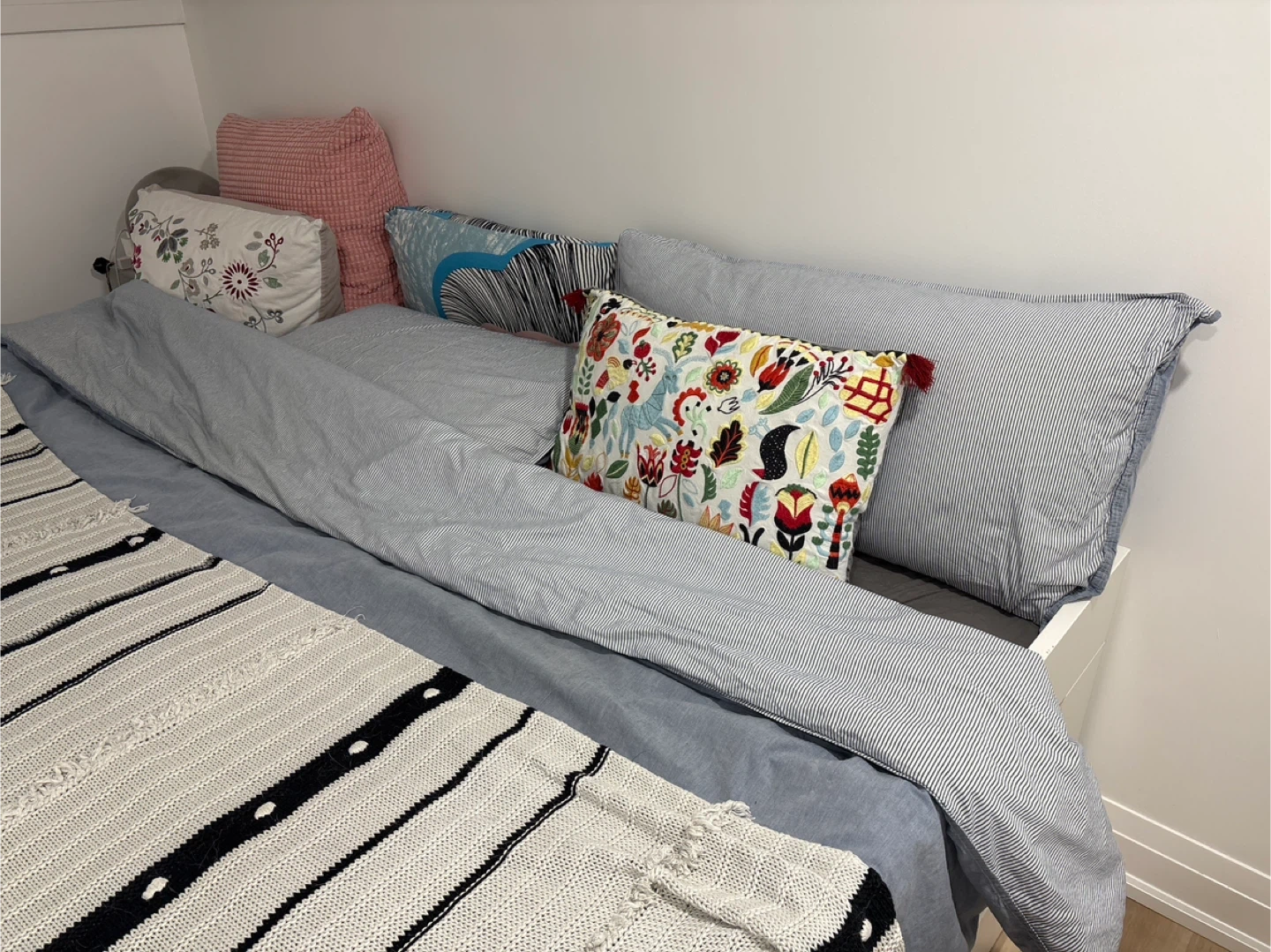 Mattresses included with mattress covers, duvet, duvet covers, blankets, pillows all included. Selling an IKEA Hemnes daybed frame in white. It's in great condition and can be used as a sofa or a bed. Perfect for a guest room or a small space! Fits a twin size mattress.