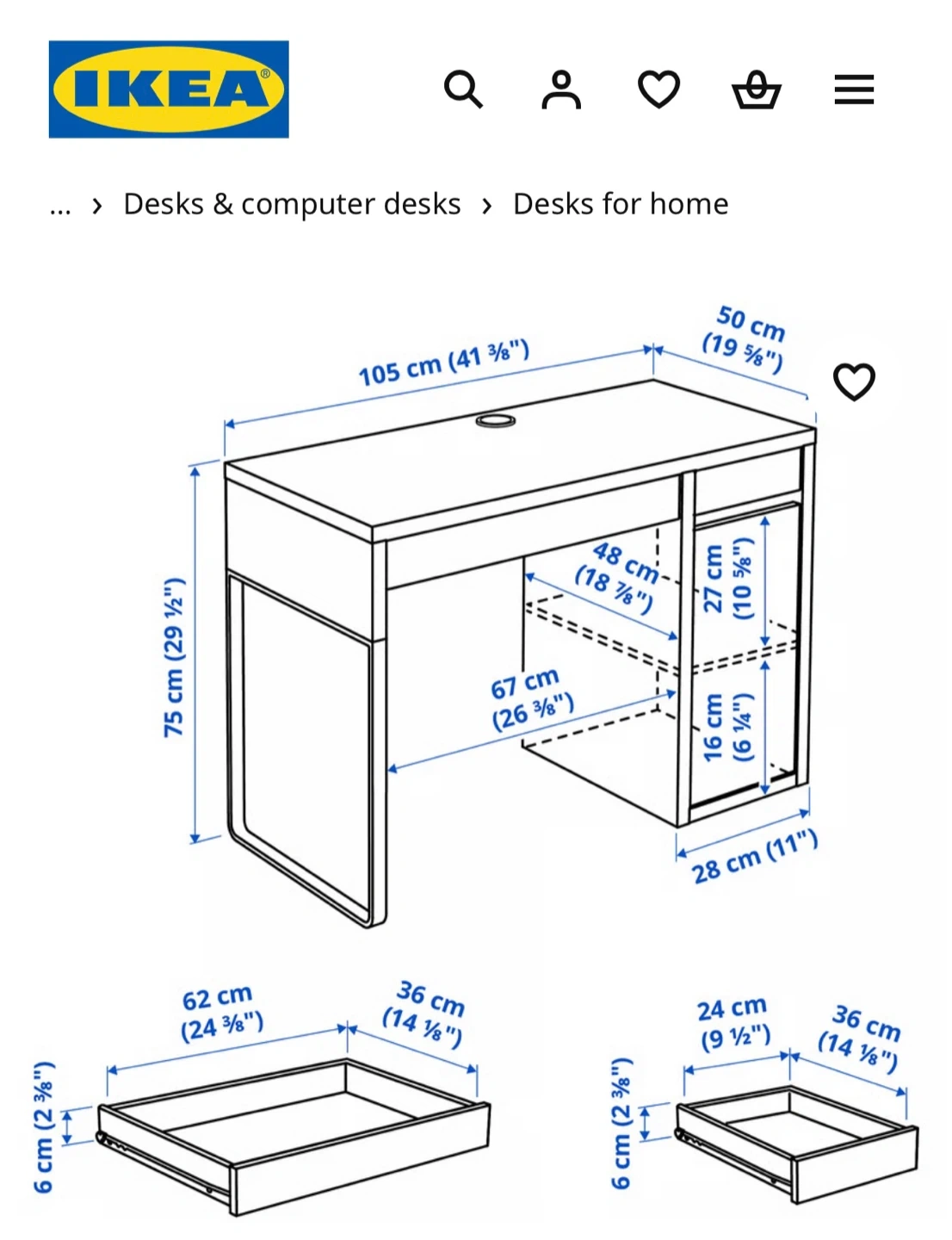 Selling an IKEA MICKE desk in black-brown. It's in great shape with just a few scratches (reason I’m selling it for cheap). The dimensions are in the last photo. Pickup: Last week of October