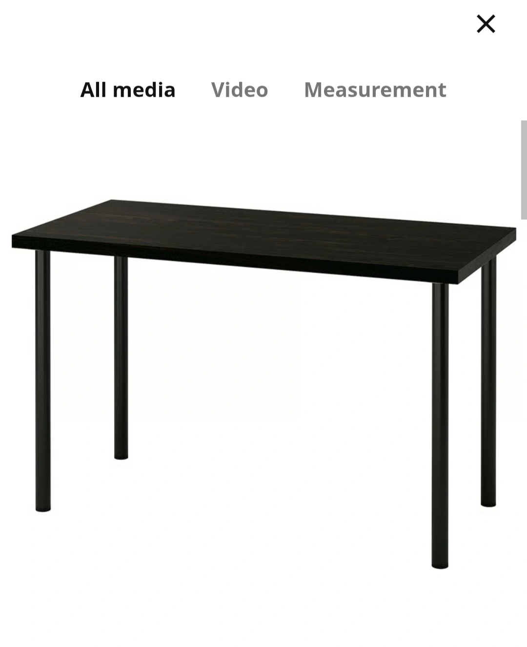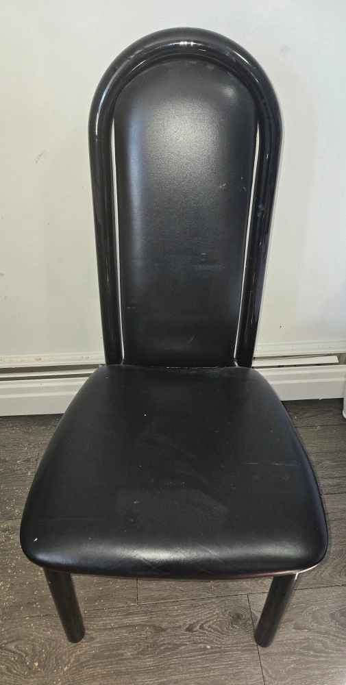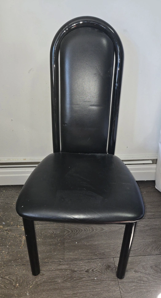 Selling a desk and 4 leather chairs. The desk appears to be an IKEA desk with dimensions of 120 cm (47 1/4") x 60 cm (23 3/4") and a height of 73 cm (28 3/4"). The chairs are black leather with a padded seat and back.