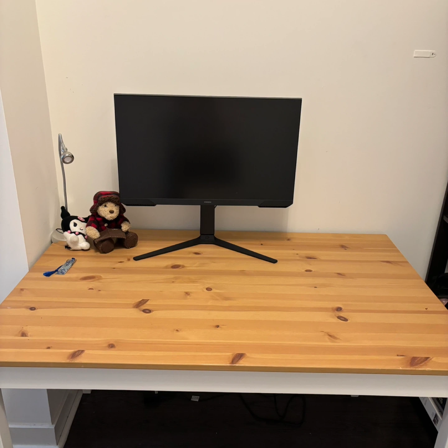 Selling an IKEA desk with a solid wood top. It's a great desk for a home office or study space. The natural wood grain adds a warm touch to any room. It's sturdy and in good condition! Only for pick up.