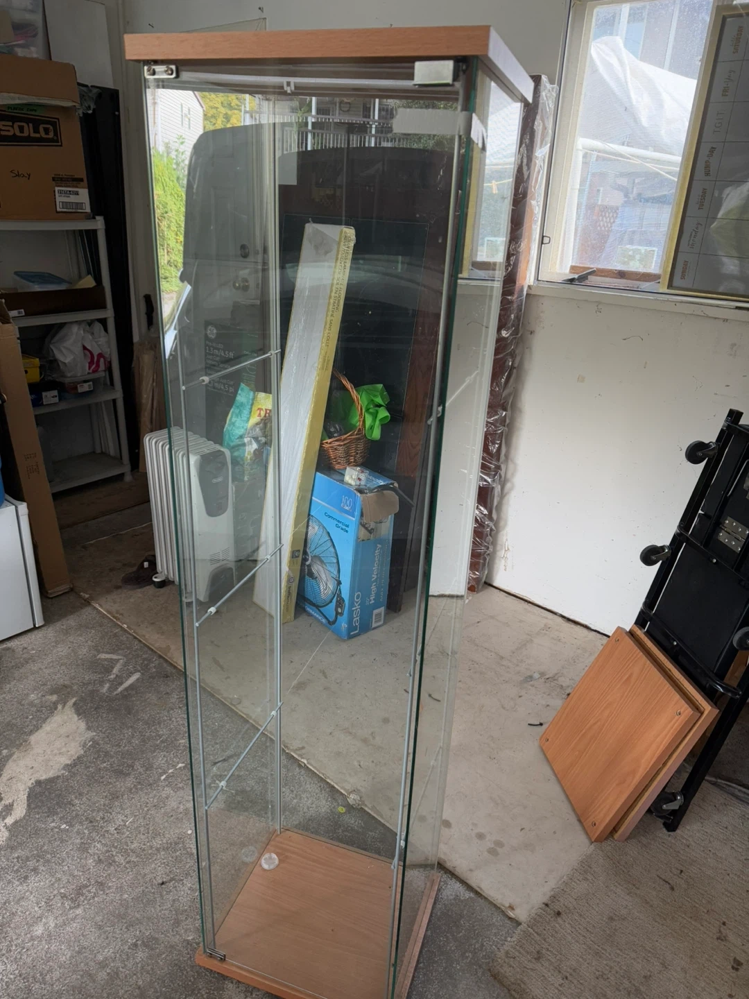 Selling an IKEA Detolf glass display cabinet. It's in great shape and perfect for displaying collectibles or anything you'd like to showcase. Dimensions: - Height: 163 cm (64 1/8") - Width: 43 cm (16 7/8") - Depth: 37 cm (14 5/8") It features four glass shelves to maximize display space Comes with everything needed.