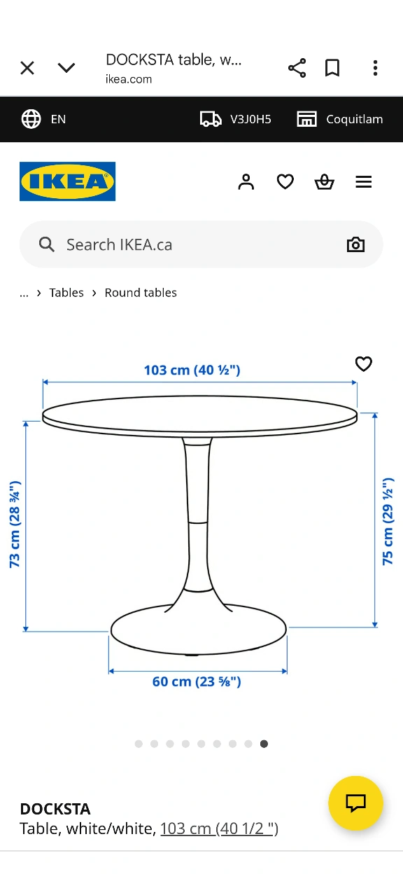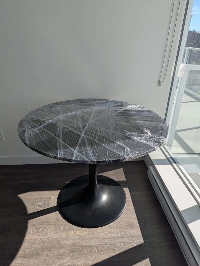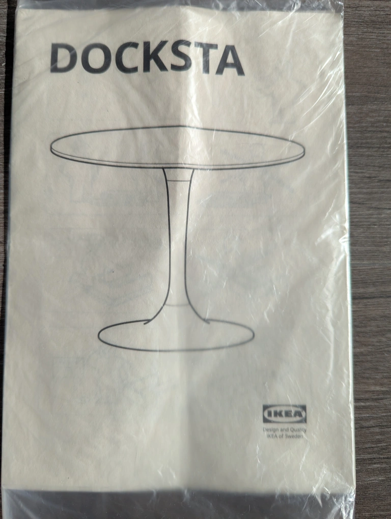 Selling an IKEA DOCKSTA table! It's a stylish round table with a black pedestal base and a 40 1/2" diameter top. The table is currently wrapped in plastic for protection, and the original instructions are included. Perfect for a small dining area or kitchen nook!
