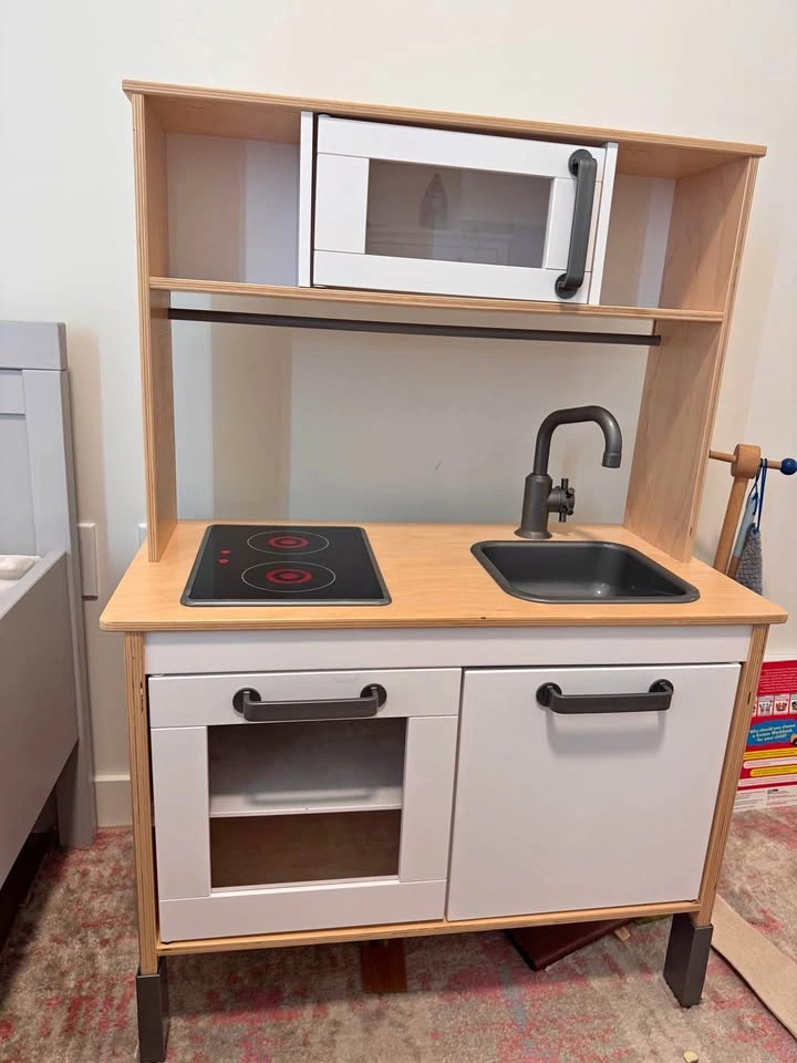 π©βπ³ IKEA Duktig Play Kitchen β Wooden Kids Pretend Play Set. A wonderful toy that encourages imagination, role play, and endless fun for little chefs. Features: β’ Includes sink, faucet, stovetop, oven, and microwave β’ Adjustable height legs (grows with your child) β’ Durable wooden design, built to last β’ Neutral colors that fit any home dΓ©cor β’ Can be customized with stickers, hooks, or lights for more fun β¨ Condition: Great, gently used and well maintained. π Pickup at 16th & Kingsway (Burnaby).
