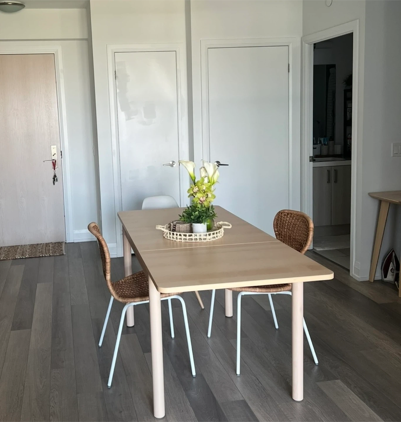 Selling an IKEA extendable dining table in great condition! It's perfect for smaller spaces but can easily be extended when you have guests over. The dimensions are approximately 120 cm (47 1/4") x 80 cm (31 1/2") when closed and extends to 120 cm (47 1/4") x 110 cm (43 1/4") $150