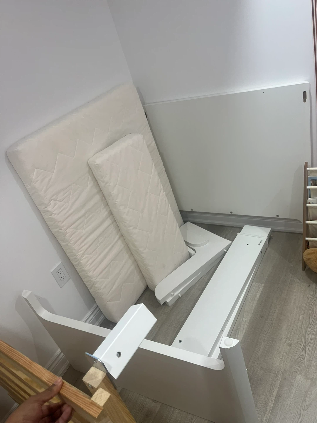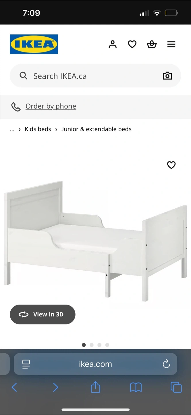 Selling an IKEA extendable junior bed in great condition! It's white and can be adjusted to different lengths as your child grows. - Minimum length: 127 cm (50") - Maximum length: 197 cm (77 1/2") - Width: 108 cm (42 1/2") - Headboard height: 81 cm (31 7/8") - Footboard height: 66 cm (26") - Mattress length: 190 cm (74 3/4") - Mattress width: 97 cm (38 1/4") - Free height under bed: 20 cm (7 7/8") - Max load: 100 kg (220 lb)