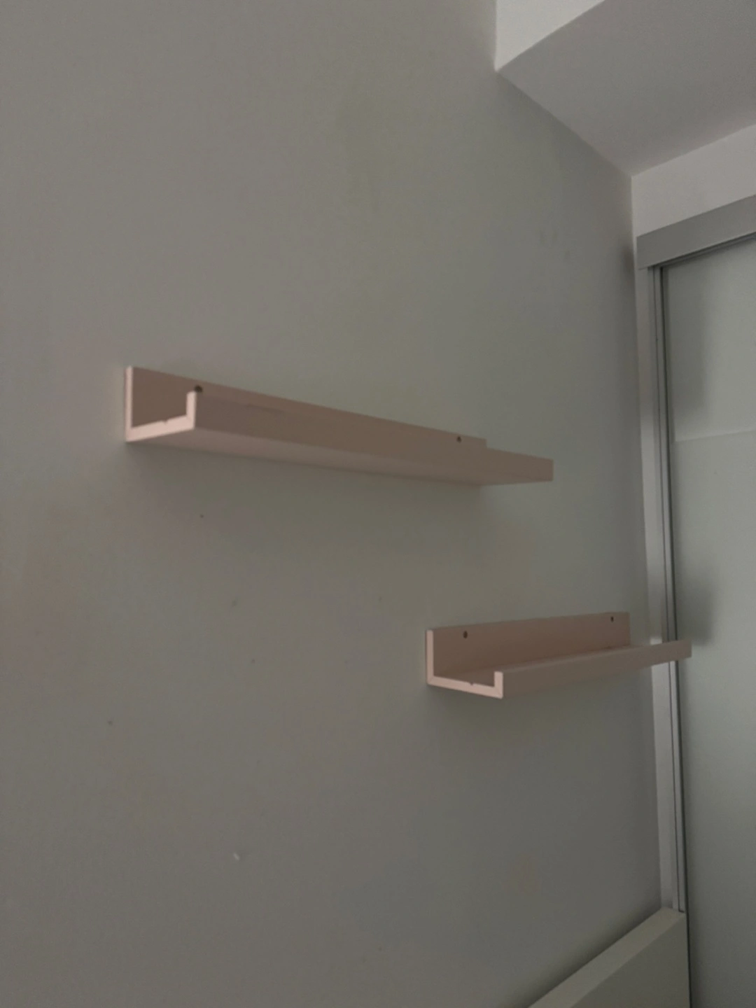 Selling a set of two floating wall shelves! They're perfect for adding a touch of style and functionality to any room. Great for displaying photos, books, or small decor items. Easy to install and in great condition!