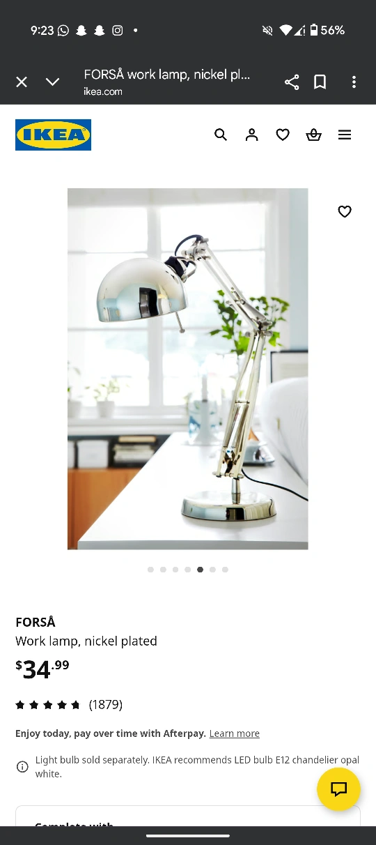 Selling a black IKEA FORSÅ work lamp! It's in great shape and perfect for a desk or workspace. Uses a max 40W type B lamp (comes included). The original listing price was $34.99. I'm moving and I just need it out of here.