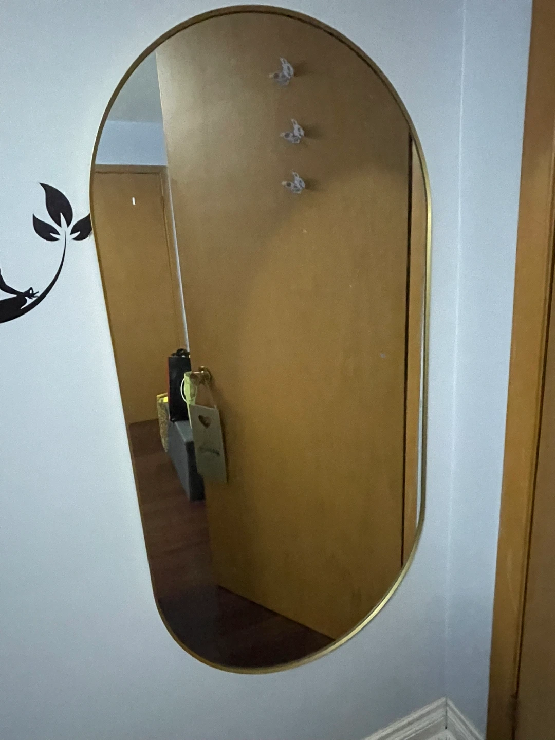 Selling a lovely framed oval wall mirror! It's in great condition and would look perfect in any room. The frame has a nice gold finish that adds a touch of elegance