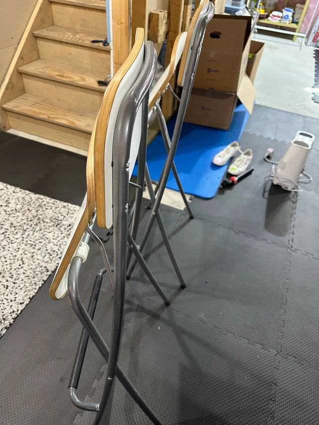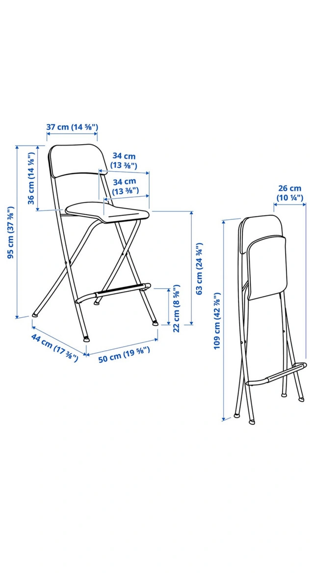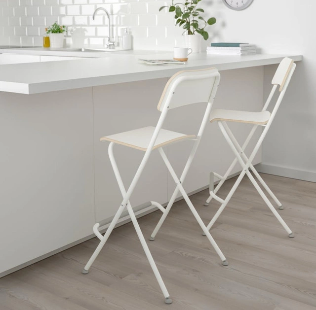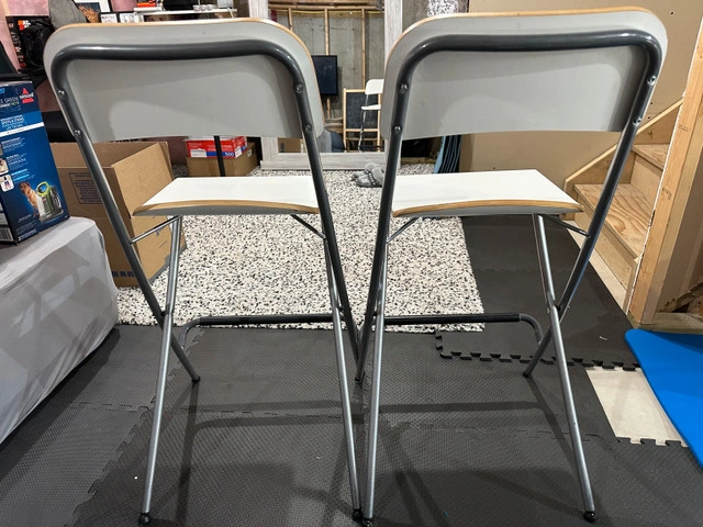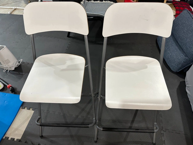 Enhance your kitchen or bar area with this pair of used Ikea Franklin bar stools, offering a blend of style and functionality with their foldable design and sturdy steel frame. These stools are perfect for adding extra seating without taking up too much space, and their simple, modern look complements any decor. Key features include: * Foldable design for easy storage * Durable steel frame * Plastic seat and backrest * Footrest for added comfort * Seat height: 24 inches These bar stools are in good shape, ready to fit into your home! I've priced them fairly. Location: Creekwood Chappelle SW If you're seeing this ad, the stools are still available!