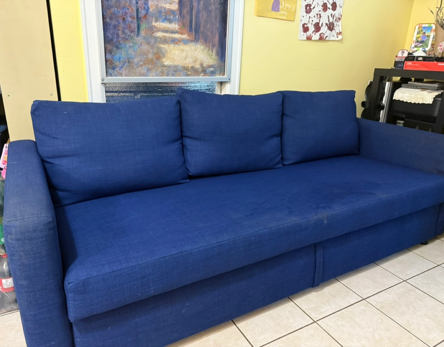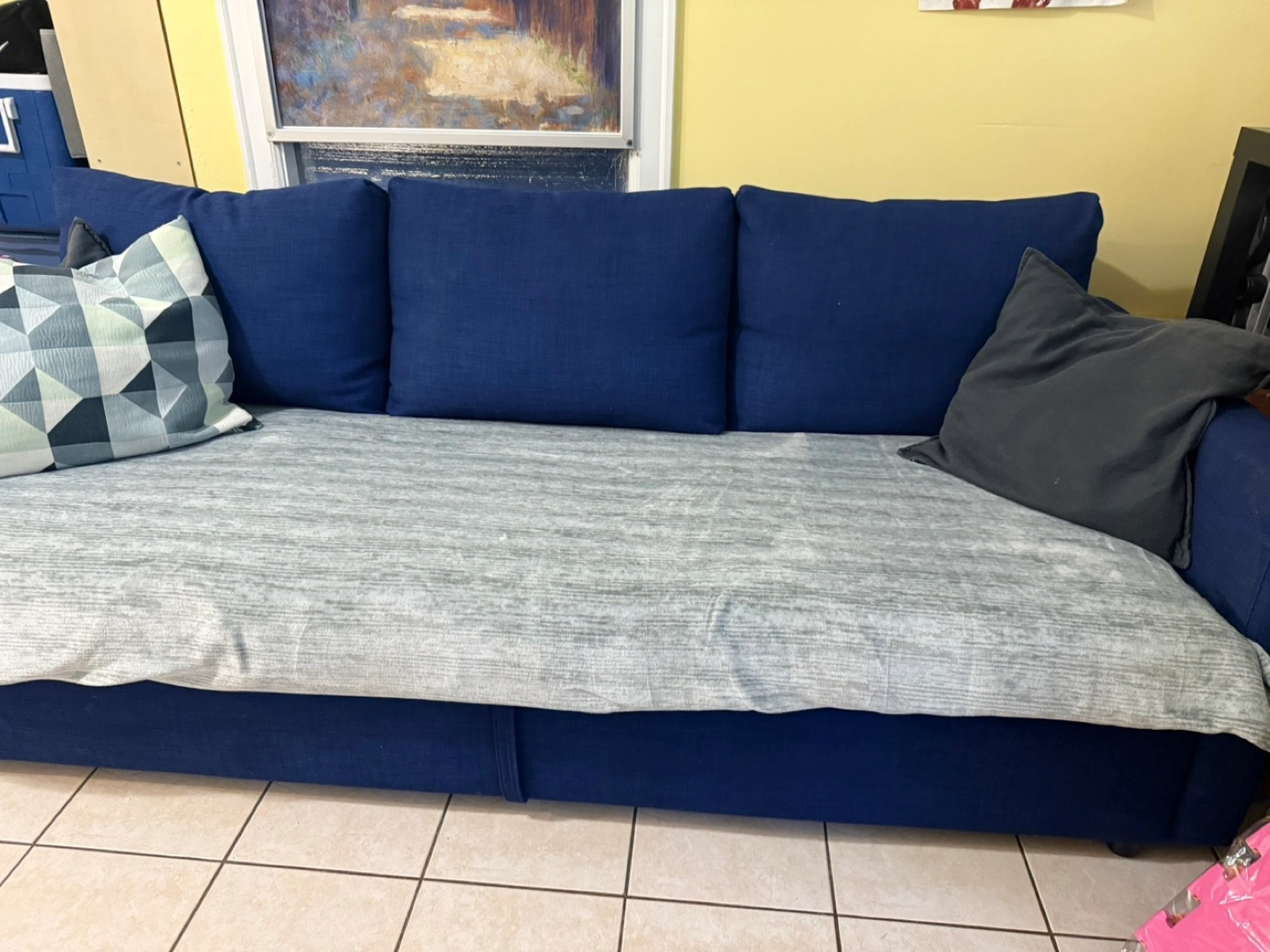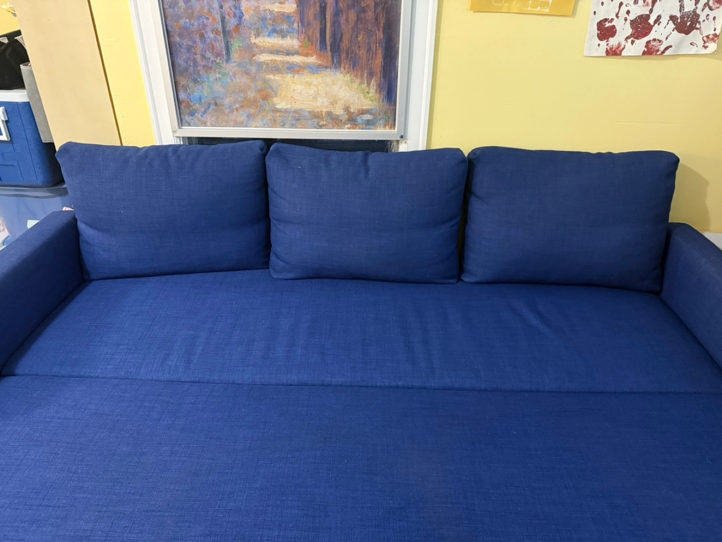 Selling a comfy IKEA sleeper sofa in blue! It's great for small spaces, easily converts into a bed, and has storage.