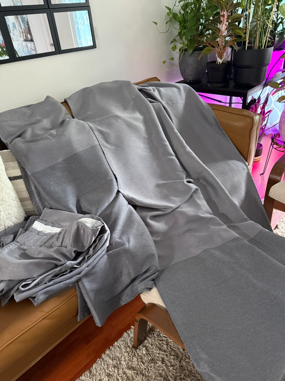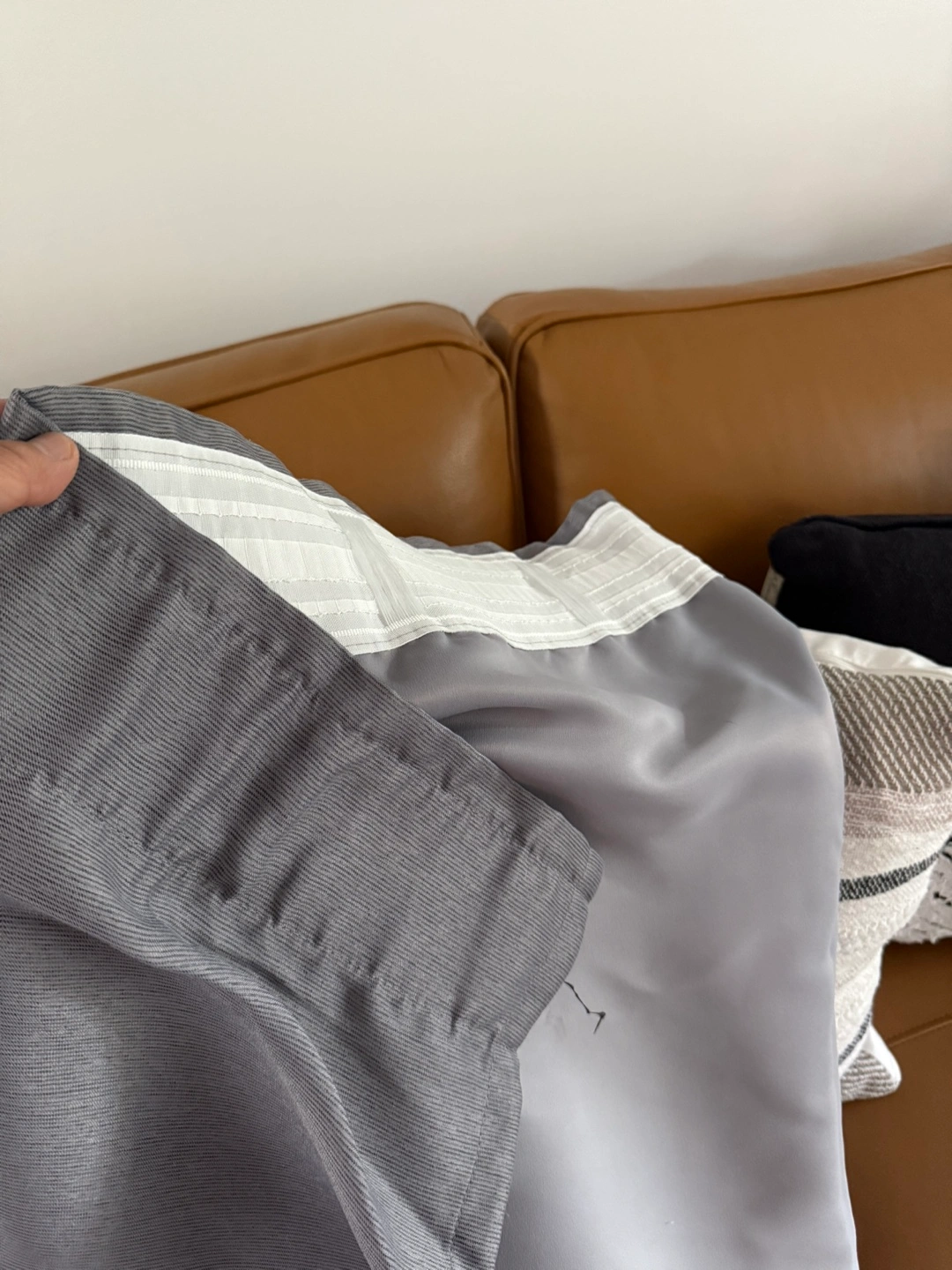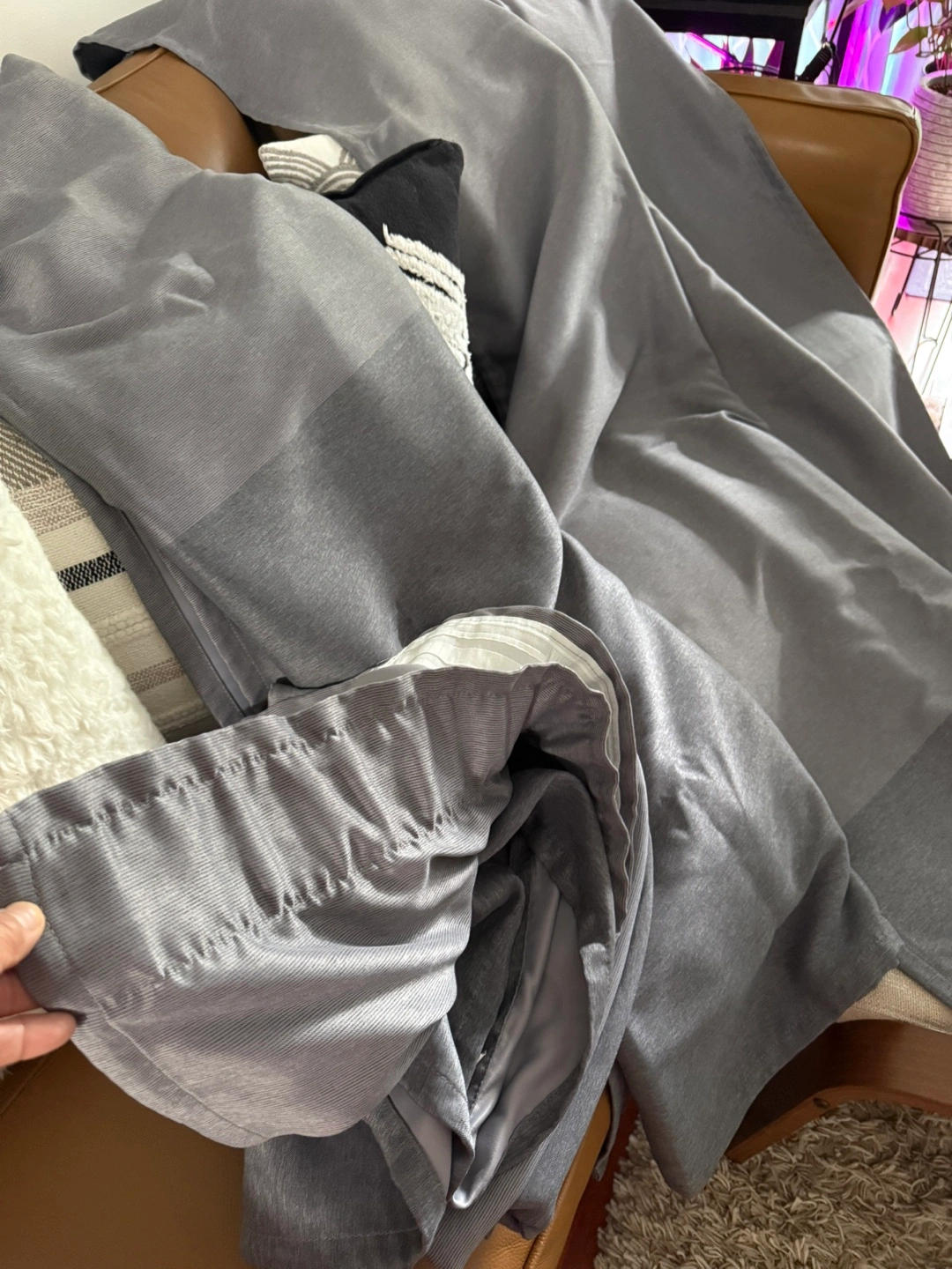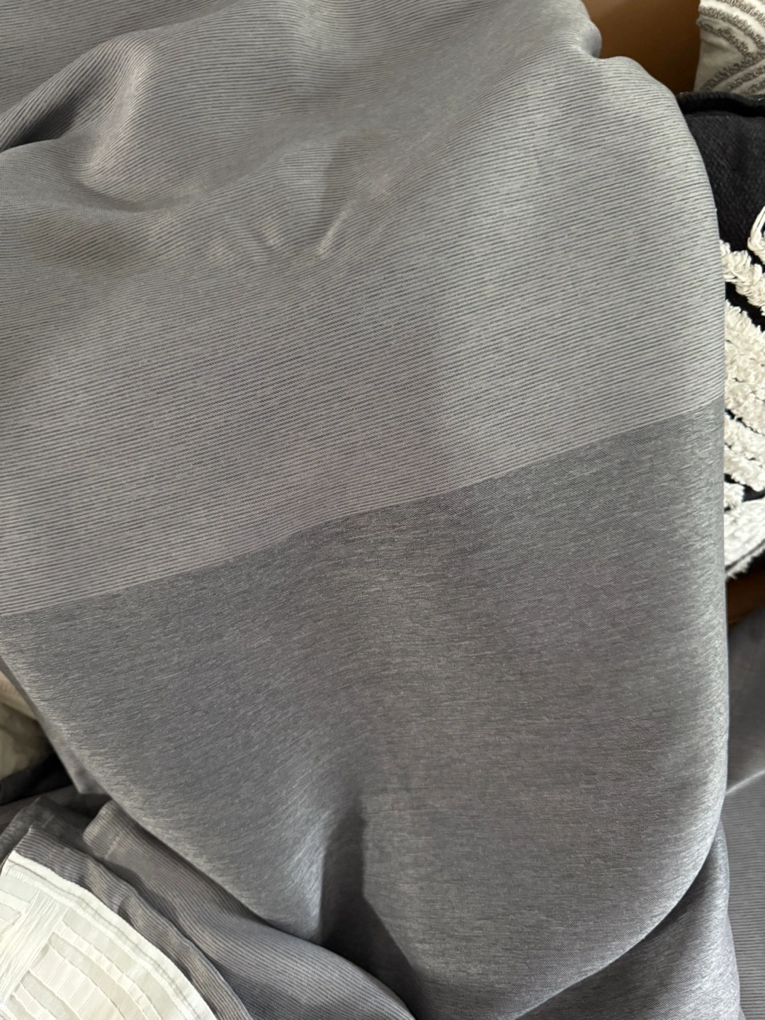 Selling a set of grey curtains! They're in great condition and would look lovely in any room. They have a subtle two-tone design that adds a touch of elegance without being too overpowering. Perfect for adding some privacy and style to your home. $40 for 4 pcs.