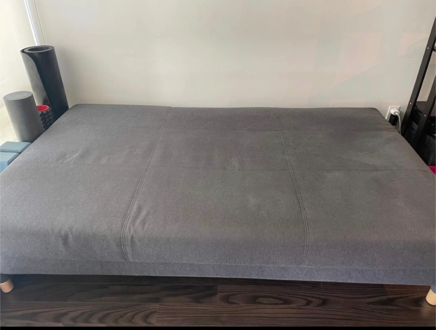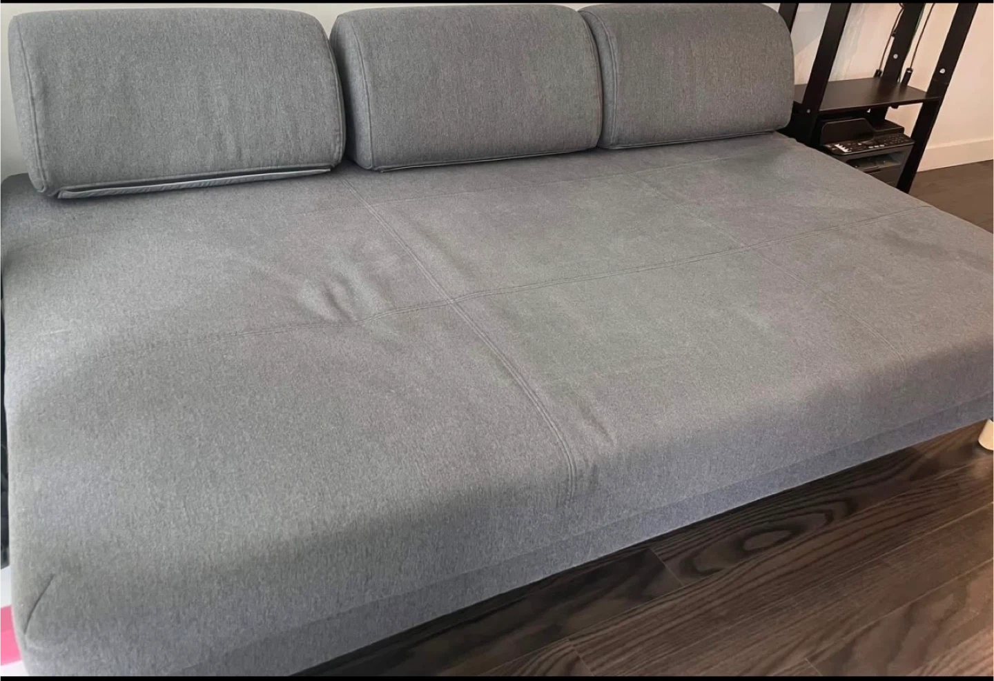 Selling a comfy grey futon! It's in great condition and would be perfect for a living room or spare room. It folds down easily into a bed. It has a simple, modern look that fits well with any decor