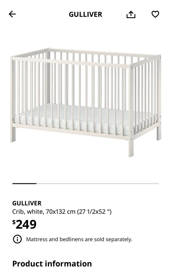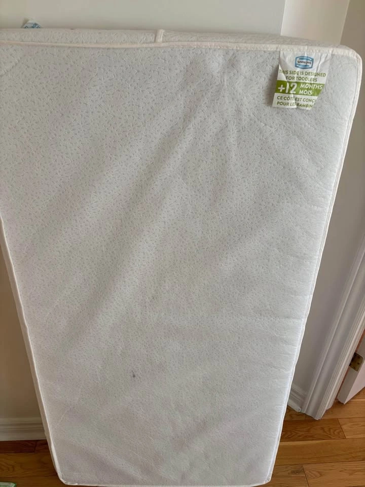 Mattress is reversible (0-12 months on one side and 12+ months plus on the other). Crib is still nice and sturdy, just has some paint chipping as would be expected (it’s about 8 years old). Also have some crib sheets that I’ll include. Great for a cottage or relative’s home. Crib has been disassembled and ready for pickup. Smoke free/cat friendly home. Pick up options: Burlington, Beamsville, Downtown Oakville.