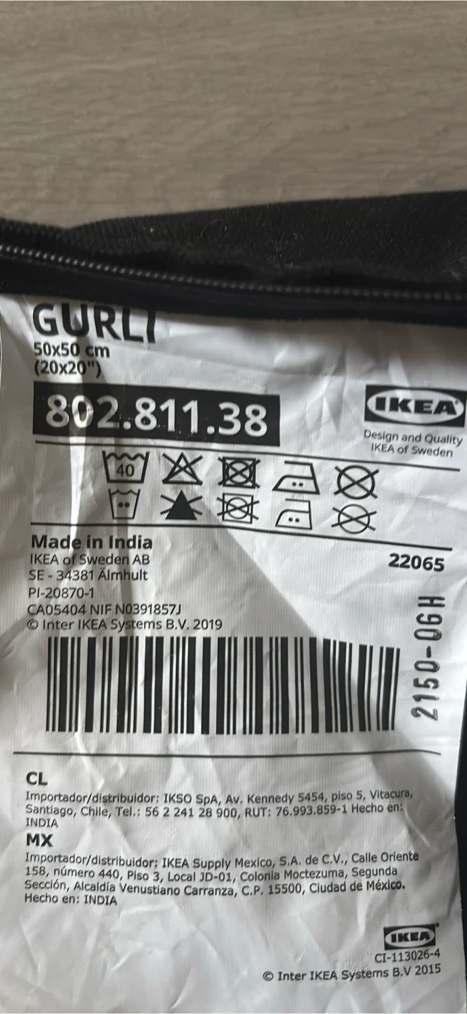Selling an IKEA Gurli cushion cover in black, sized 50x50 cm (20x20 inches). Also includes an INNER pillow insert, sized 40x65 cm (16x26 inches). Both are in great condition and ready to add some comfort to your space!