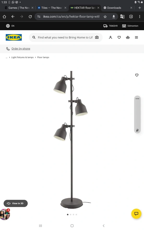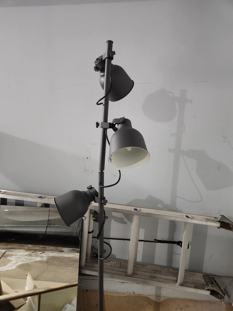 Selling an IKEA Hektar floor lamp with three adjustable spotlights in dark grey. It's in great shape and ready to brighten up your space!