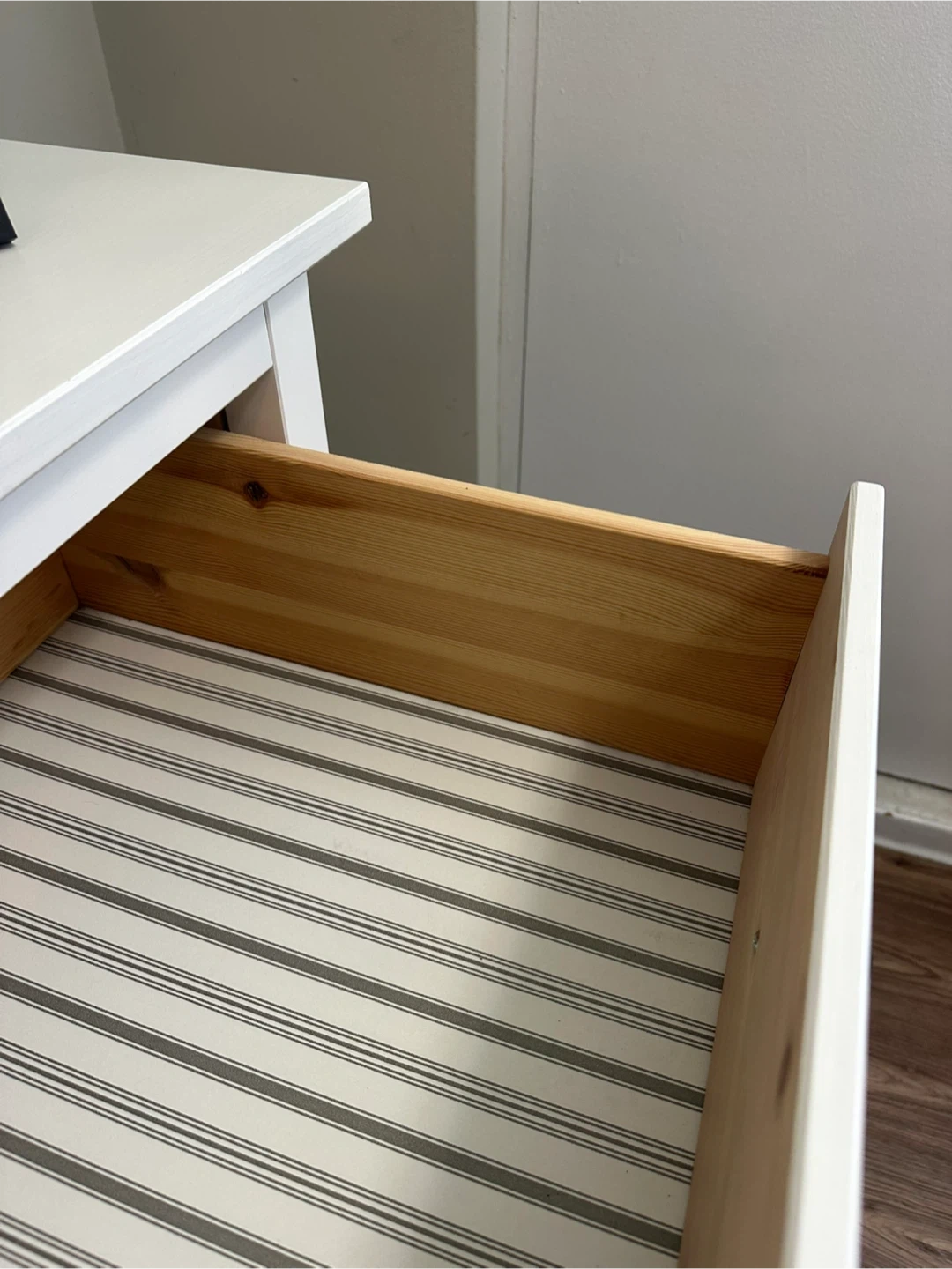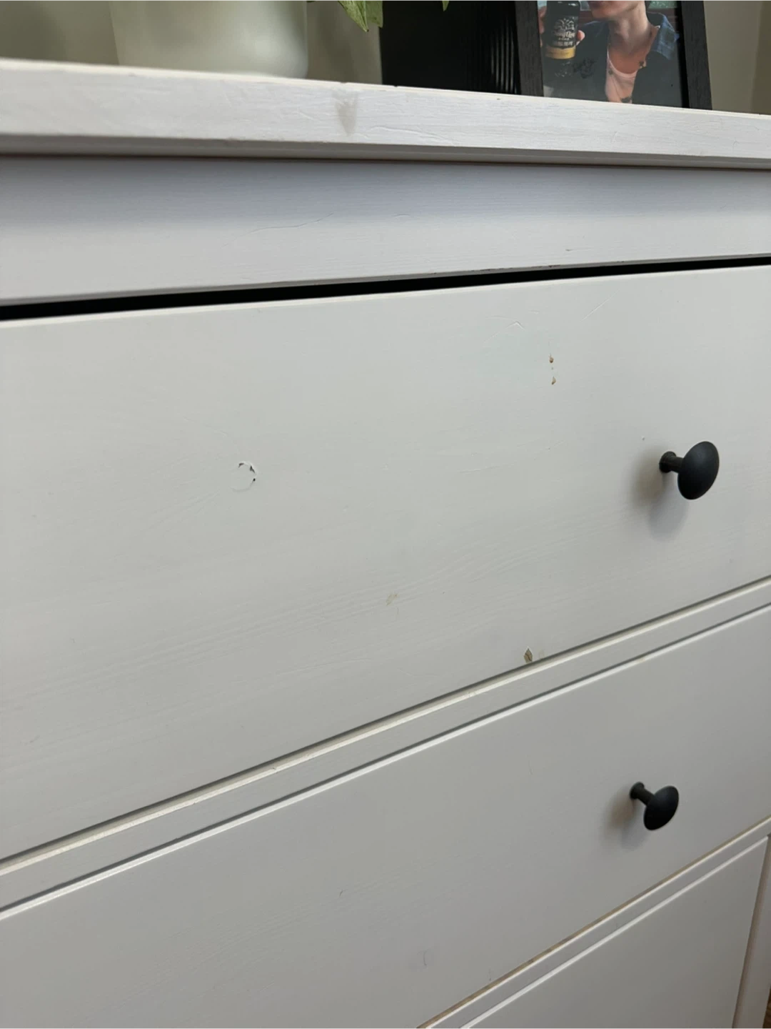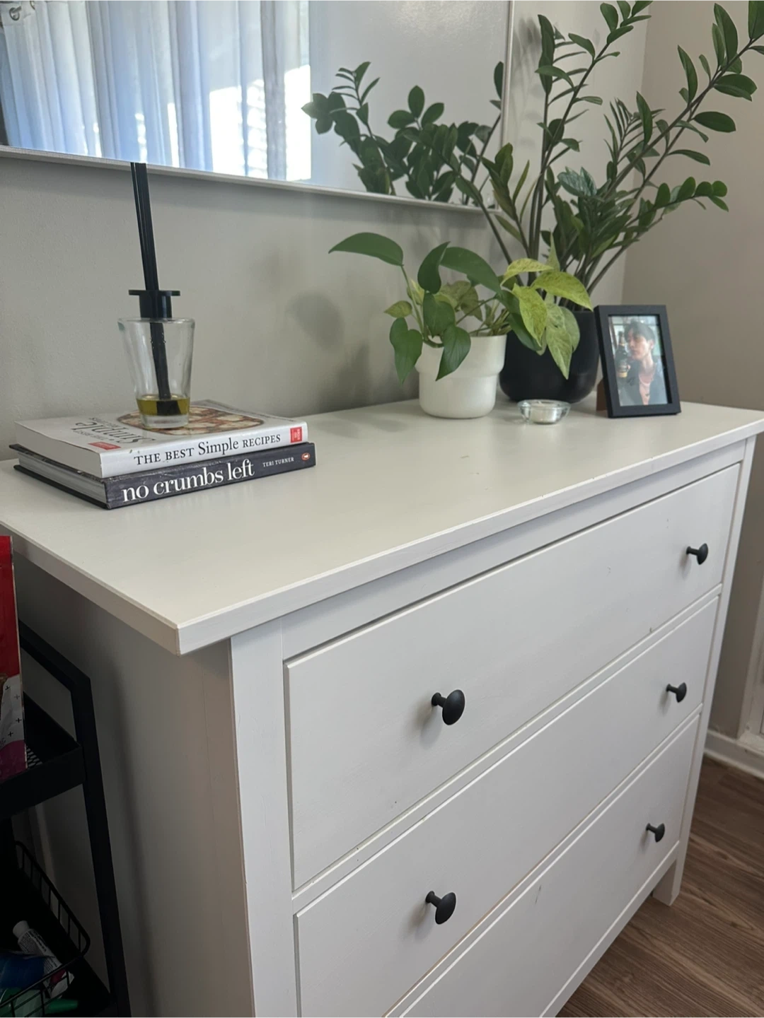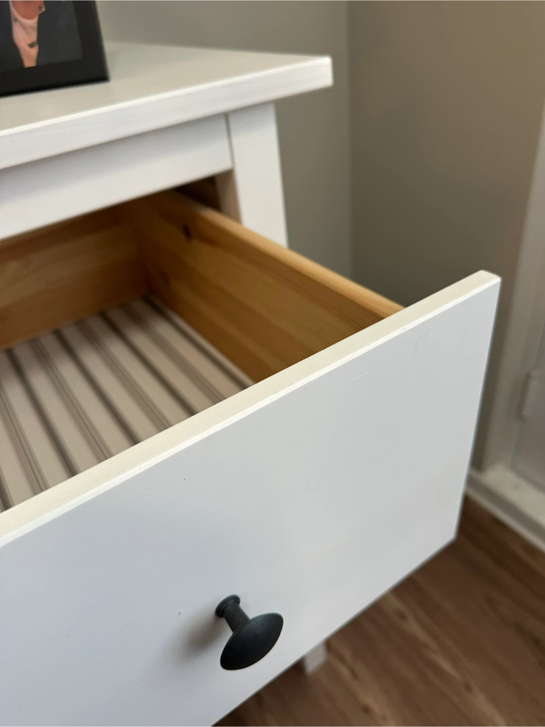 Selling a white IKEA Hemnes 3-drawer dresser. It's in good condition, perfect for adding some extra storage to your bedroom or living space. There are some signs of use (the white paint is peeling off in some locations), as shown in the photos. It's a great, sturdy piece of furniture. The drawers are working well, and it’s still perfectly functional. πŸ‘πŸ» Size: 107 x 49 x 95 (H) cm Brand: IKEA Model: HEMNES Not available for sale at IKEA anymore.