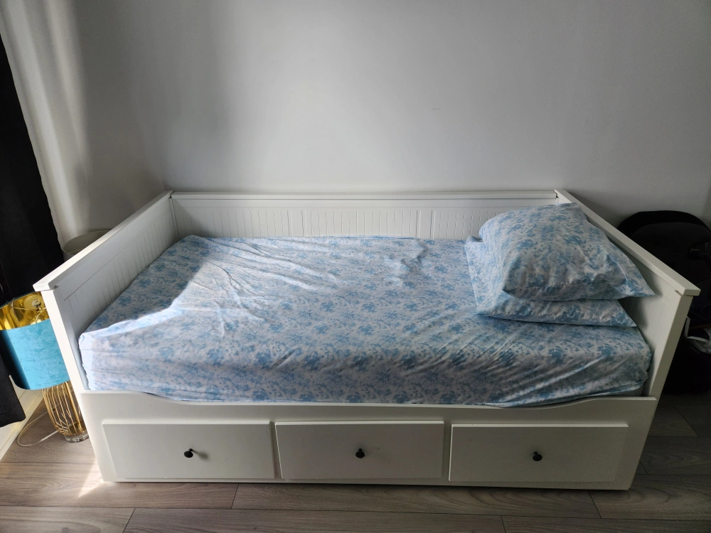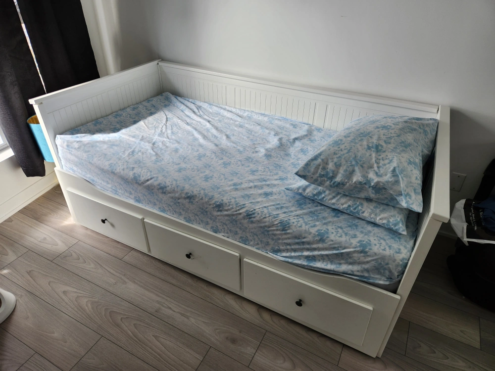 White Queen Size Bed with pillow cases