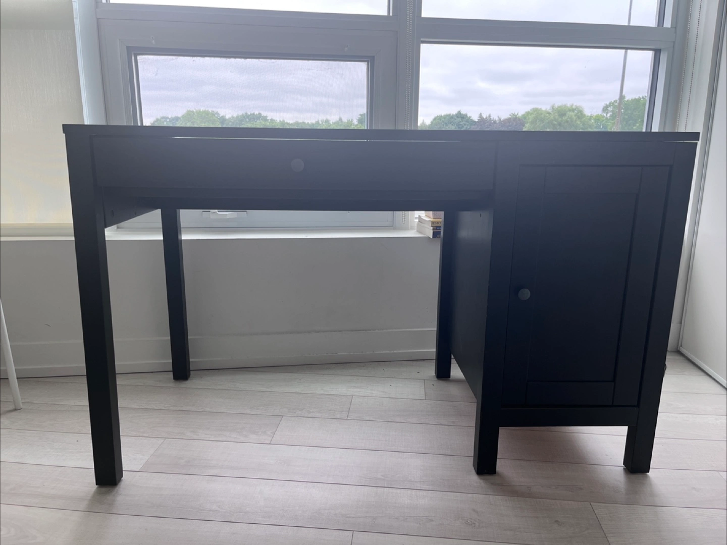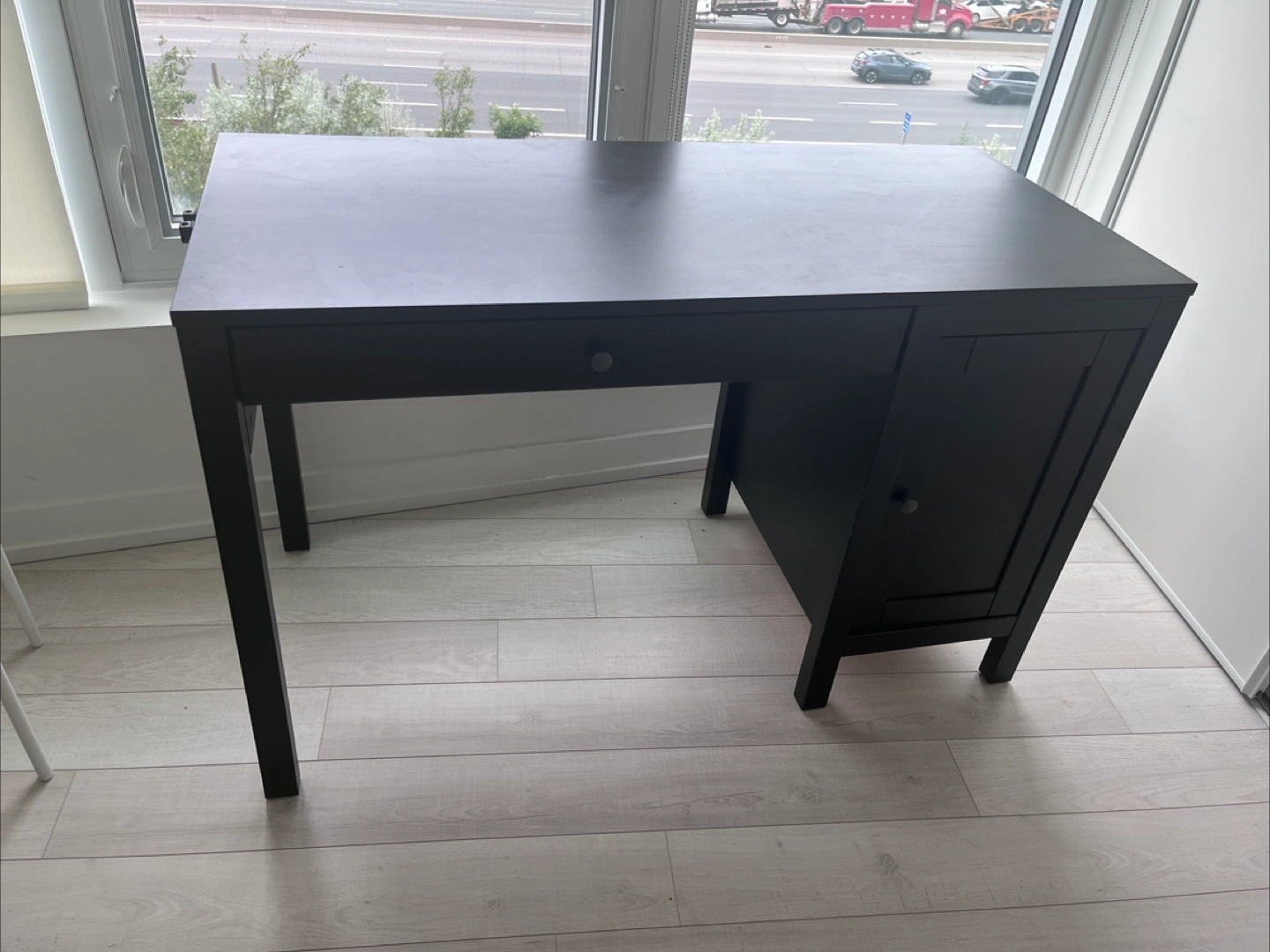 IKEA HEMNES Desk – Black-Brown Pick up in North York (near Bessarion Station) HEMNES desk from IKEA – solid wood, very sturdy. One central drawer and a cabinet with shelf. Good condition, with some light wear on the surface (as shown in photos). Size: 120x47x75 cm Current IKEA price: $299 + tax Selling for: $130 ⚠️ Payment accepted via cash or Interac e-transfer only. No cheques of any kind. Product link: https://www.ikea.com/ca/en/p/hemnes-desk-black-brown-40339792/