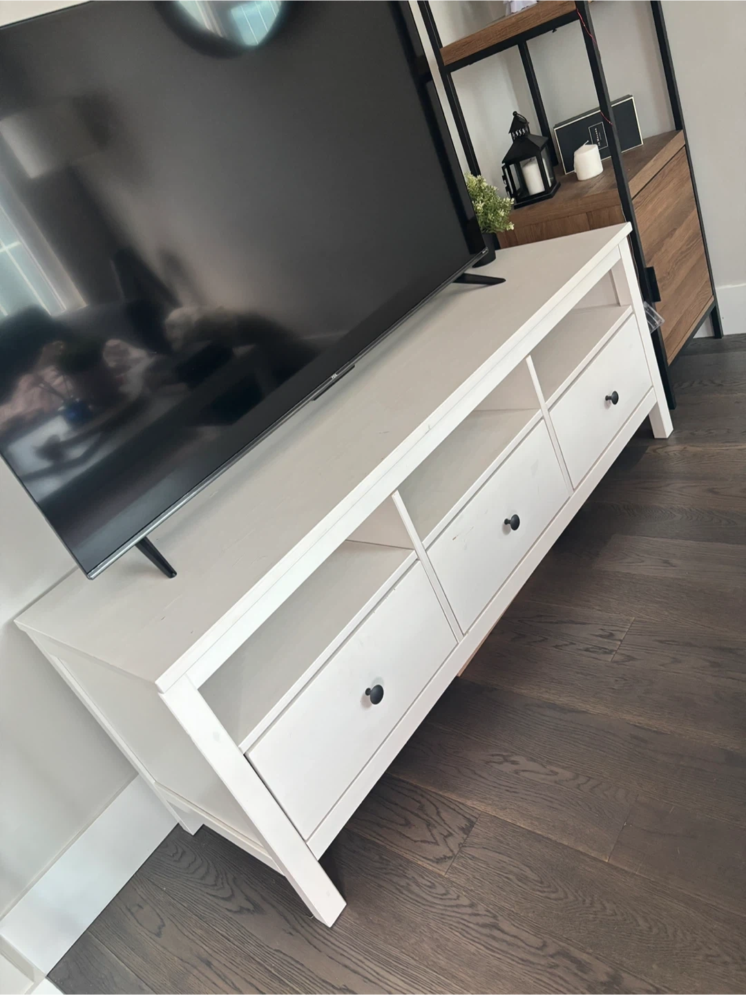 Selling an IKEA Hemnes TV bench in white stain! Good condition, few scratches. This bench measures 148x47x57 cm (58 1/4x18 1/2x22 1/2 "). Originally bought for $349