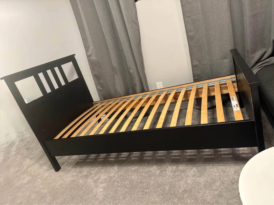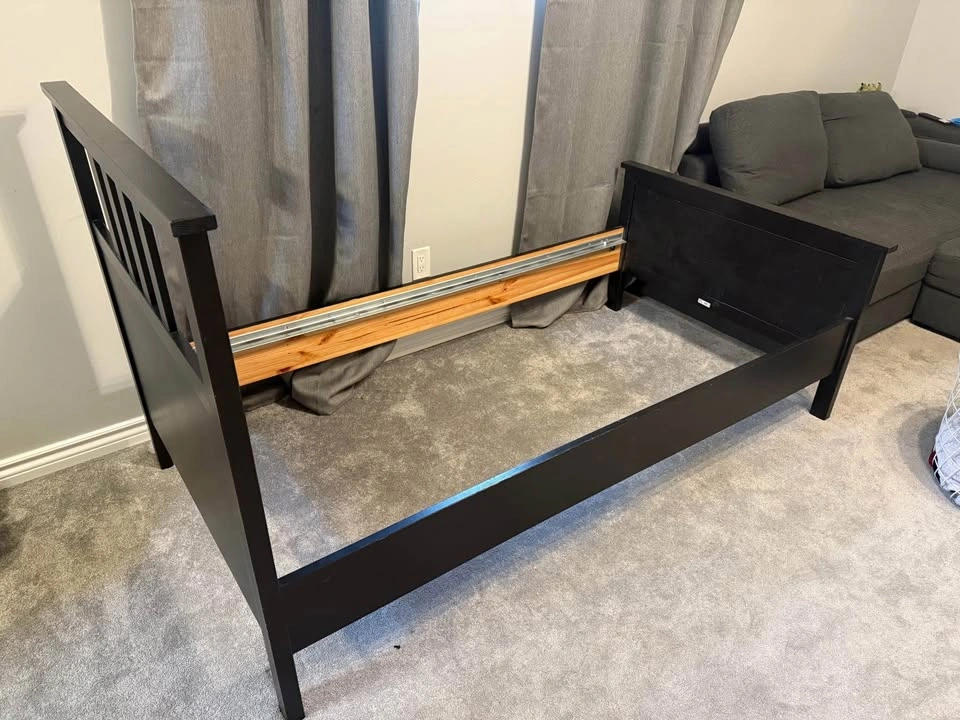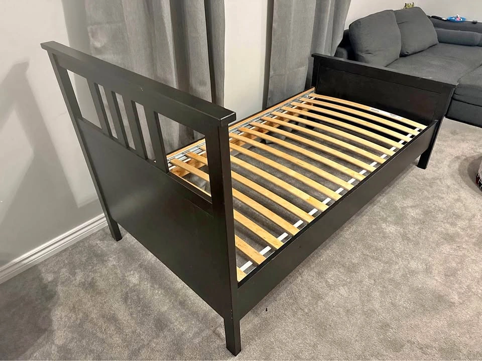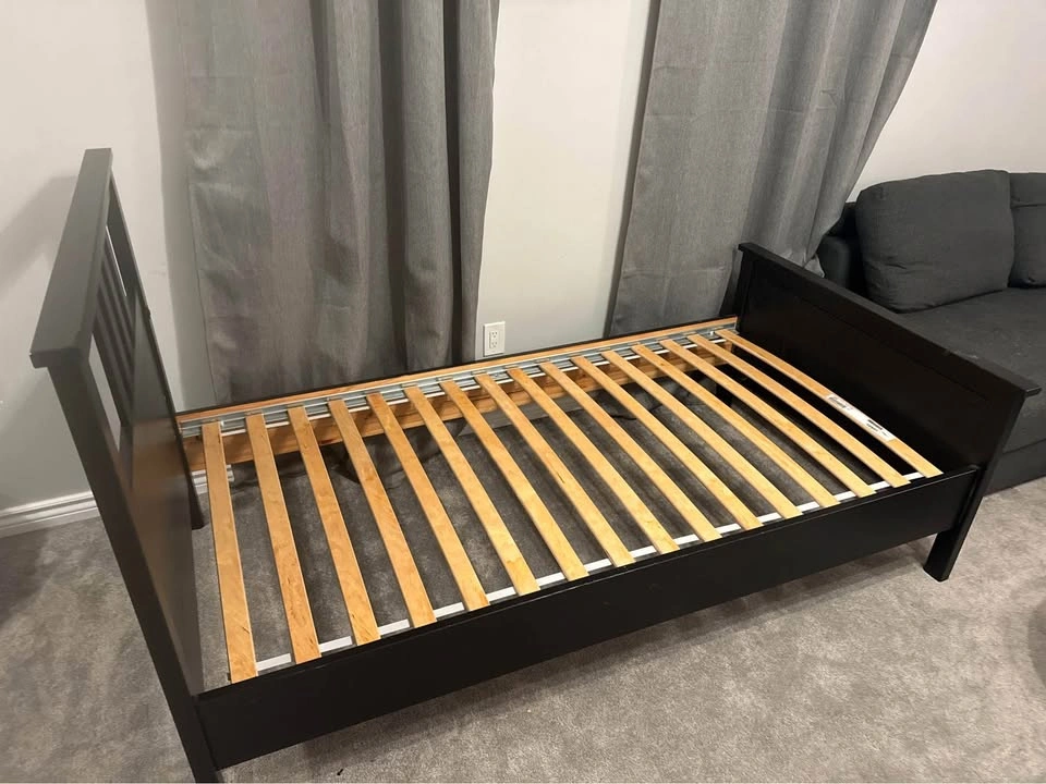 Go rest condition, can take apart if needed. Slats ARE included. Pick up in Terwillegar, can deliver for a fee. My son upgraded to a queen size.