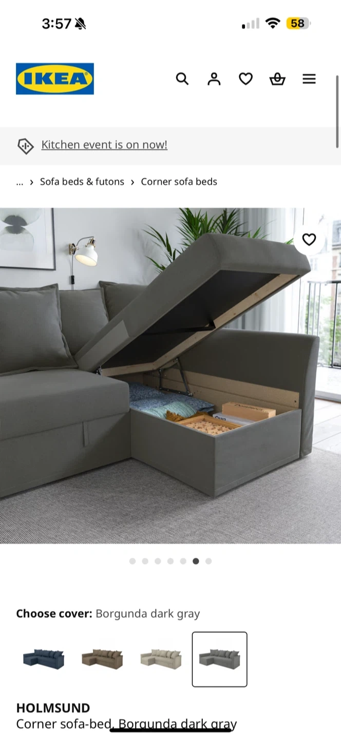 IKEA HOLMSUND Corner Sofa-bed, Borgunda Dark Gray