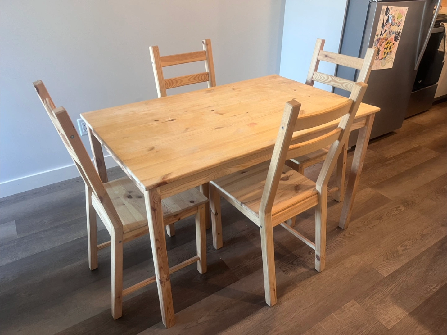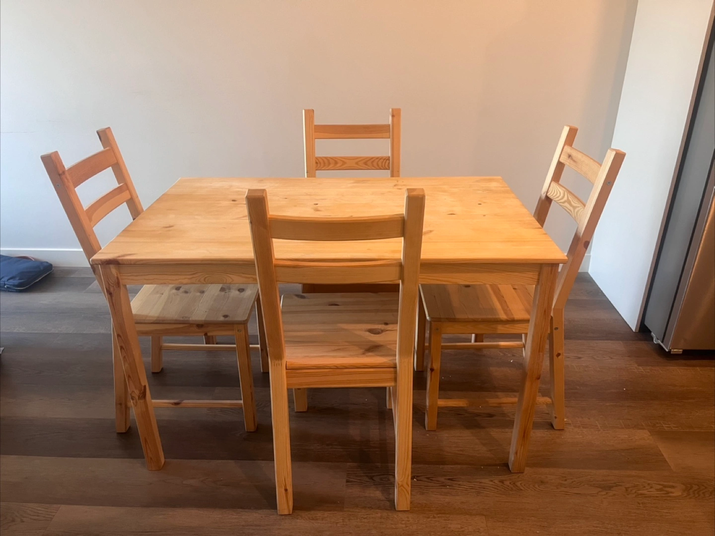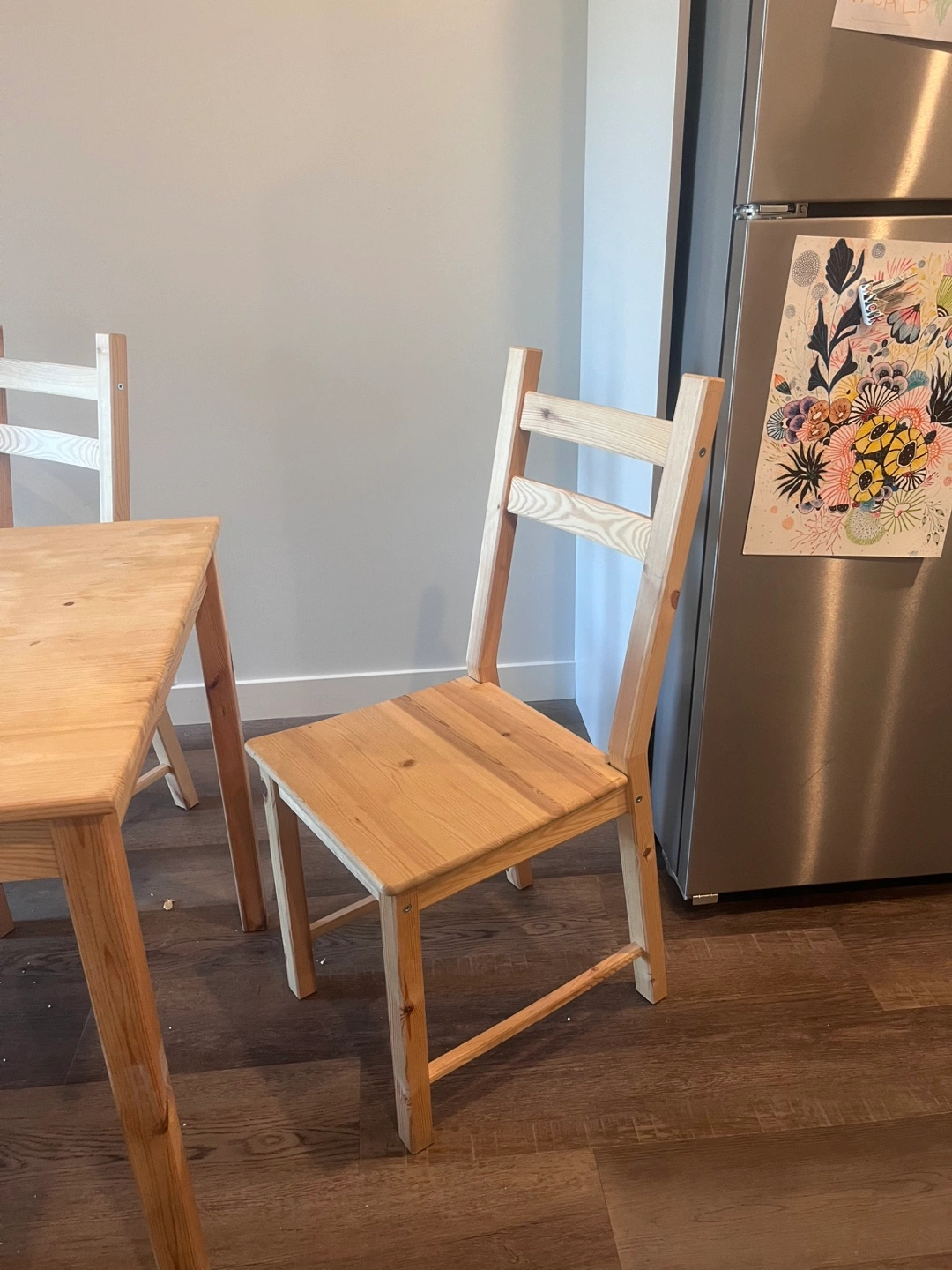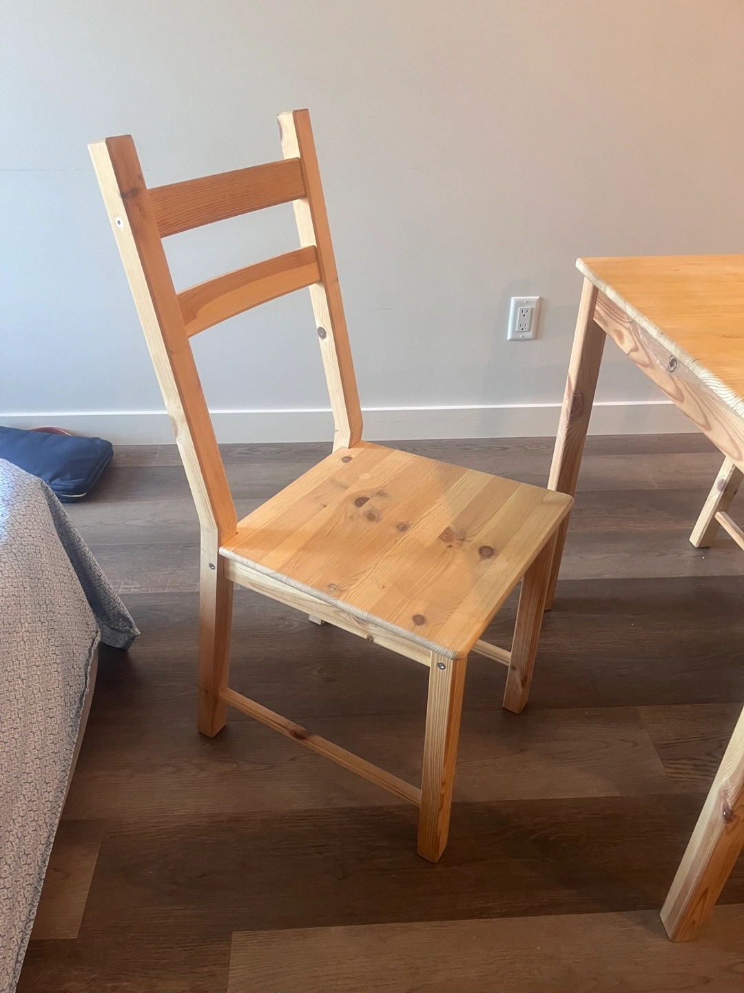 Selling an IKEA IVAR chair made of solid wood. It's in great condition and ready for a new home! Perfect for adding a natural touch to your dining or study area Dining Table - 1 Pc Dining Chairs - 4 Pc