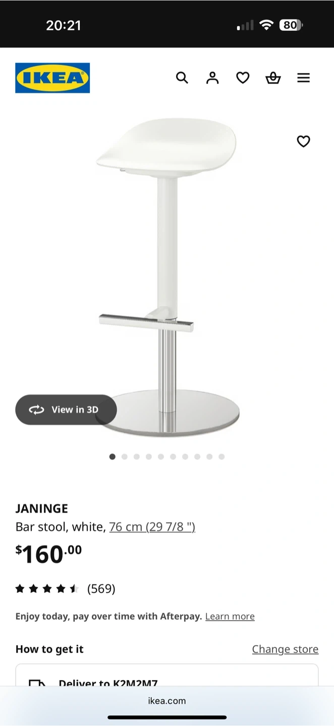 Selling a pair of IKEA Janinge bar stools in white. They are 76 cm (29 7/8 ") tall. Great for a kitchen island or bar area. Originally bought for $160 each plus taxes! Selling both for $250!