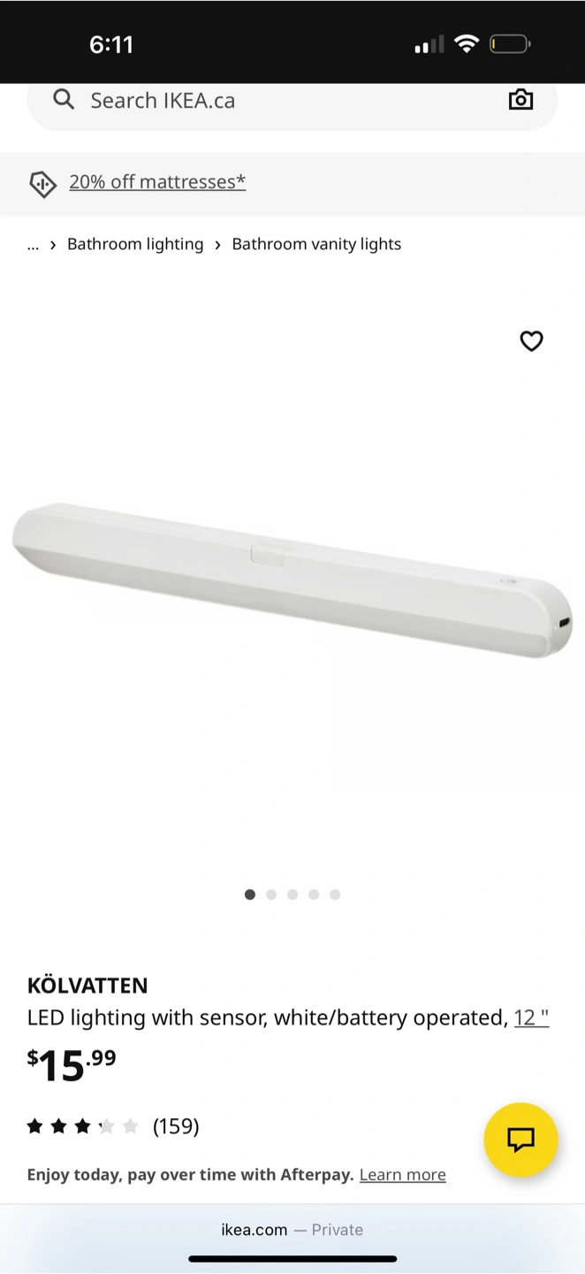 Selling an IKEA KÖLVATTEN LED lighting strip. It's white, battery operated, and 12 inches long. It also has a sensor! Retails for $15.99 at IKEA selling for 45$ pack of 4