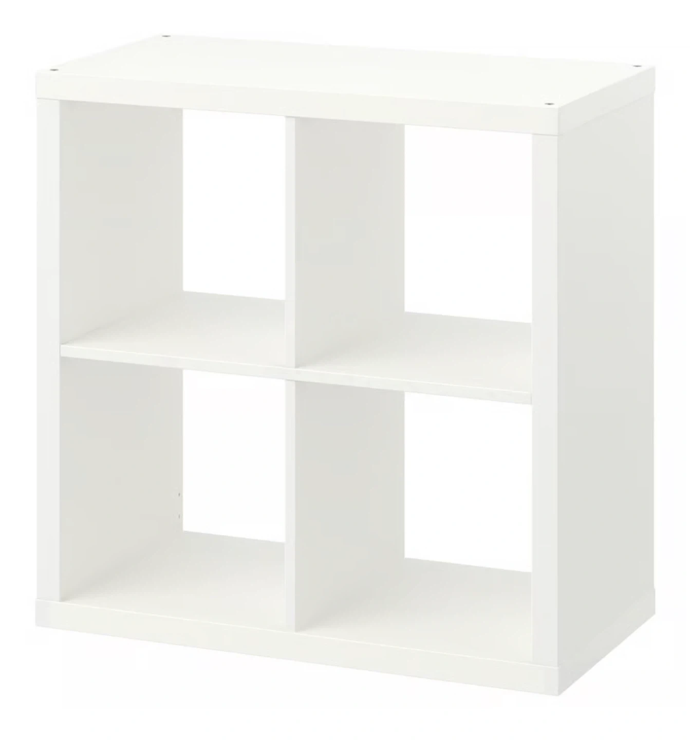 Selling a white IKEA Kallax shelving unit! It's 99% new barely used and perfect for organizing books, toys, or anything you need to store. This unit has four compartments, offering lots of space for storage or display. It’s a great addition to any room!