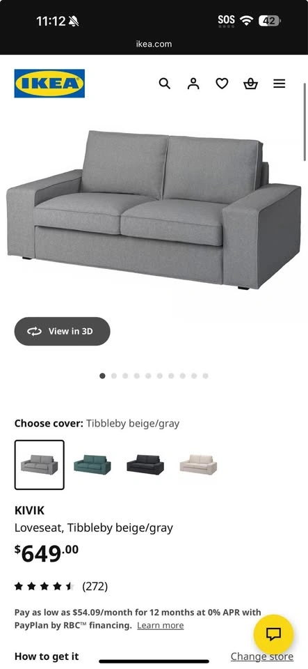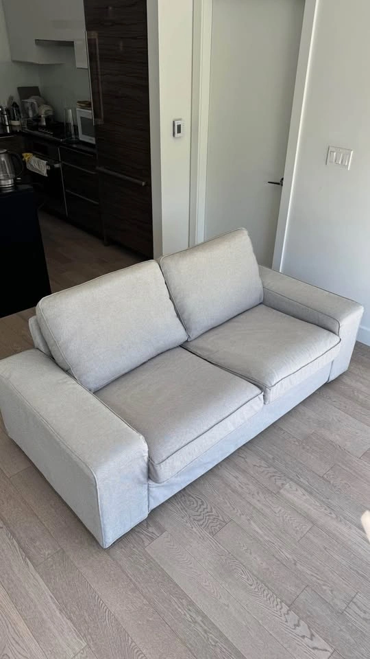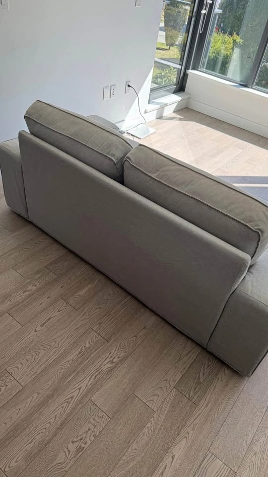 Selling an IKEA loveseat KIVIK. Used in a smoke-free, pet-free, and child-free home. Some wear and tear but still very good condition (see videos and photos). Can be upholstered with the new cover (new cover is $149+tax) Only selling due to a move.