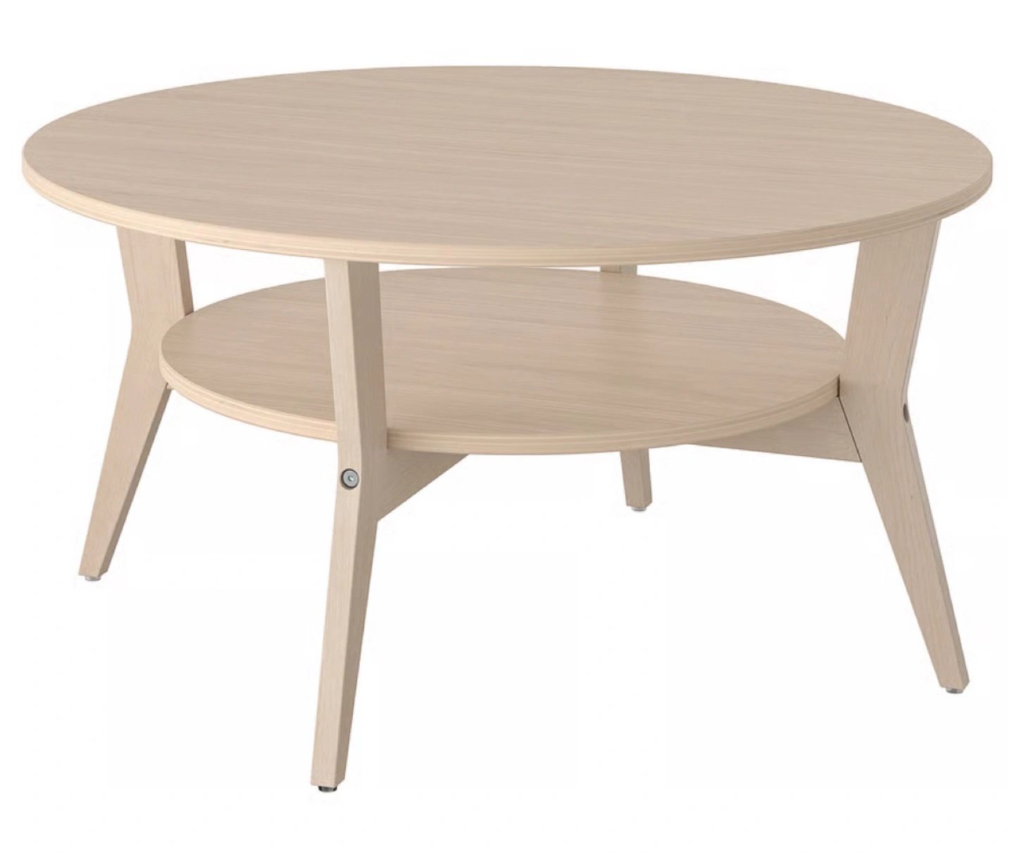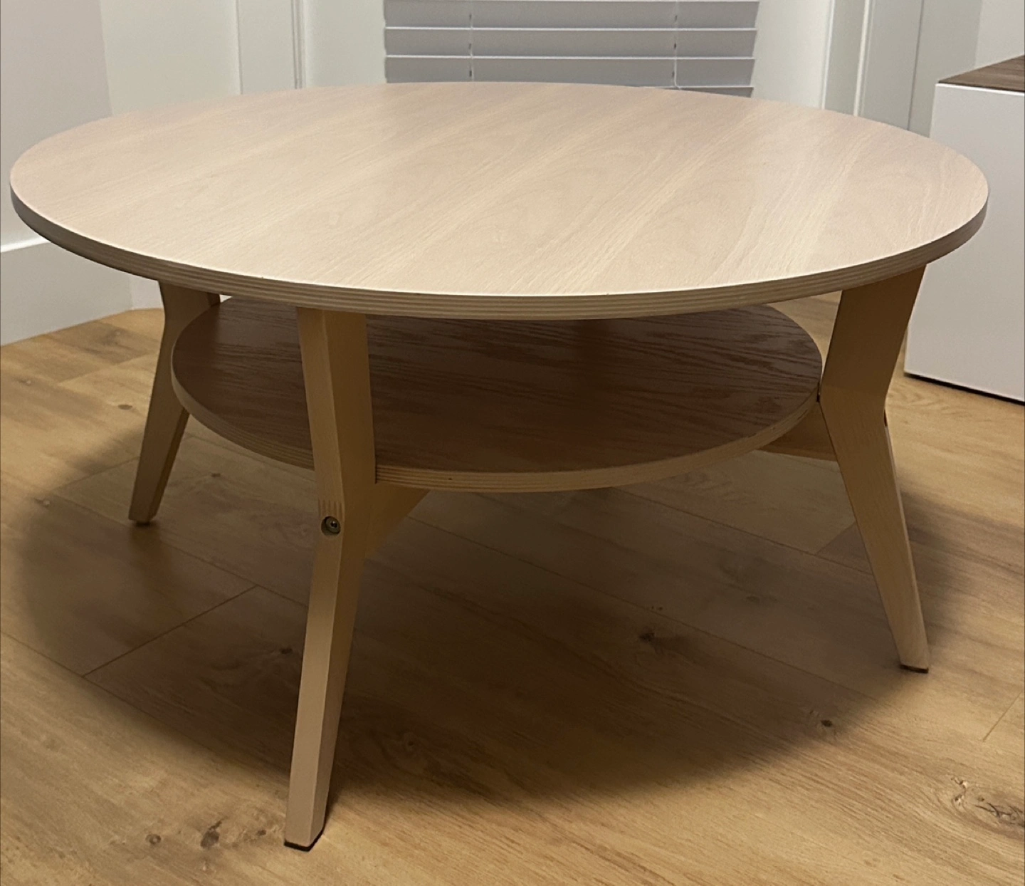 Selling a cute IKEA LÖVBACKEN coffee table in birch effect! It's perfect for adding a touch of Scandinavian style to your living room. It features a round tabletop and a lower shelf for storage or display. The table is in great condition and ready for a new home!