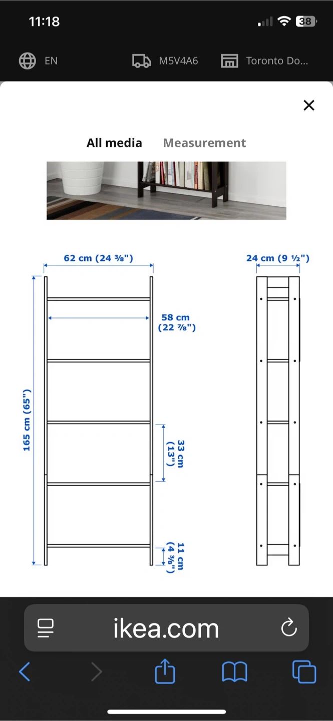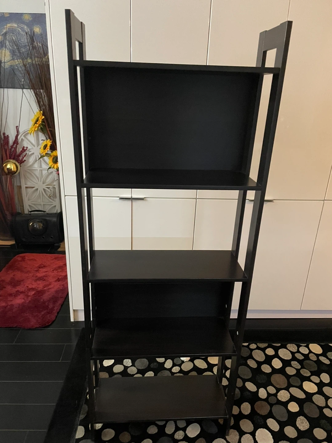 Selling a black IKEA Lerberg shelf unit! It's in great shape and ready for a new home. The dimensions are approximately 62 cm (24 3/8") wide and 165 cm (65") tall, with a depth of 24 cm (9 1/2")