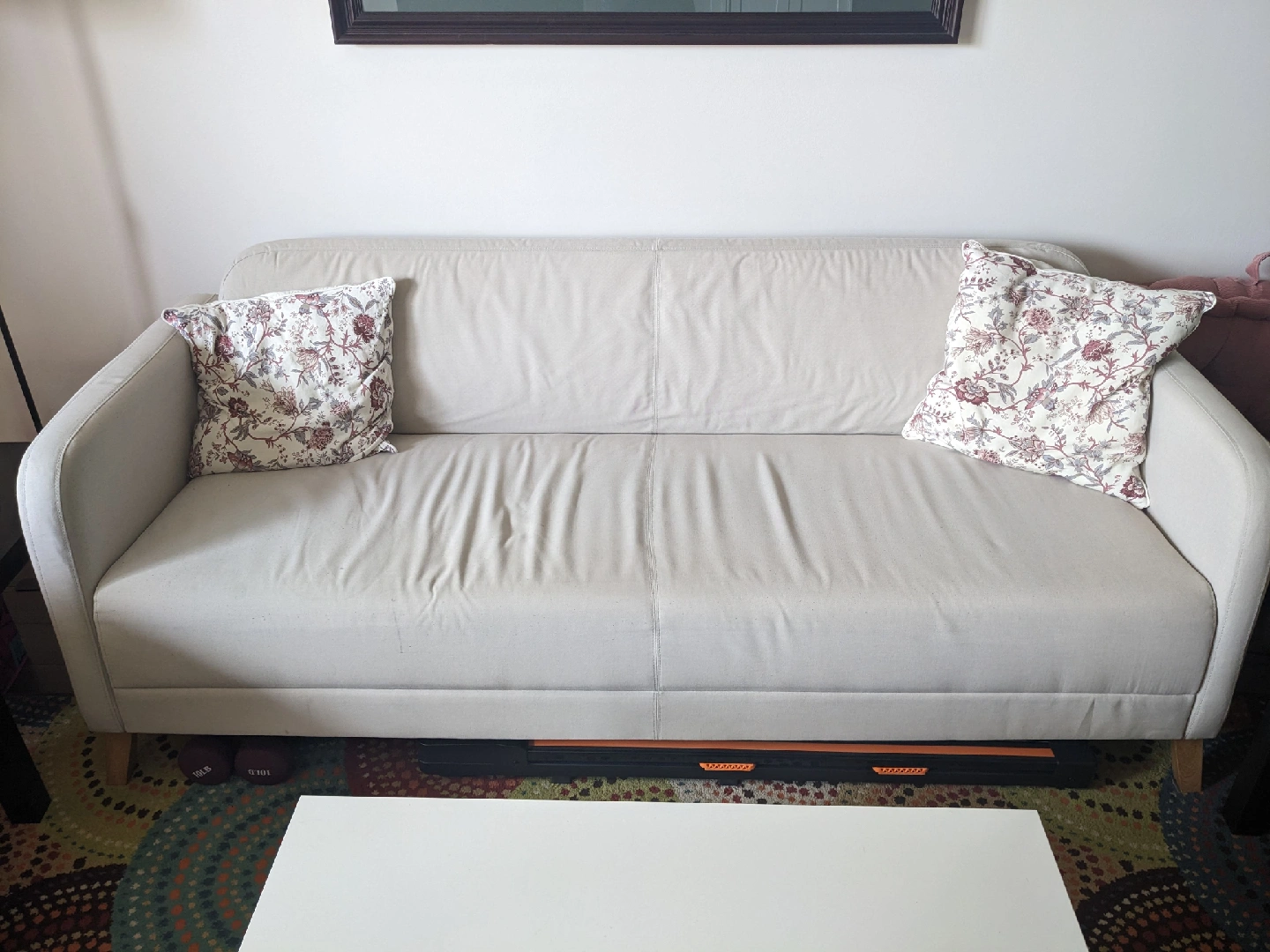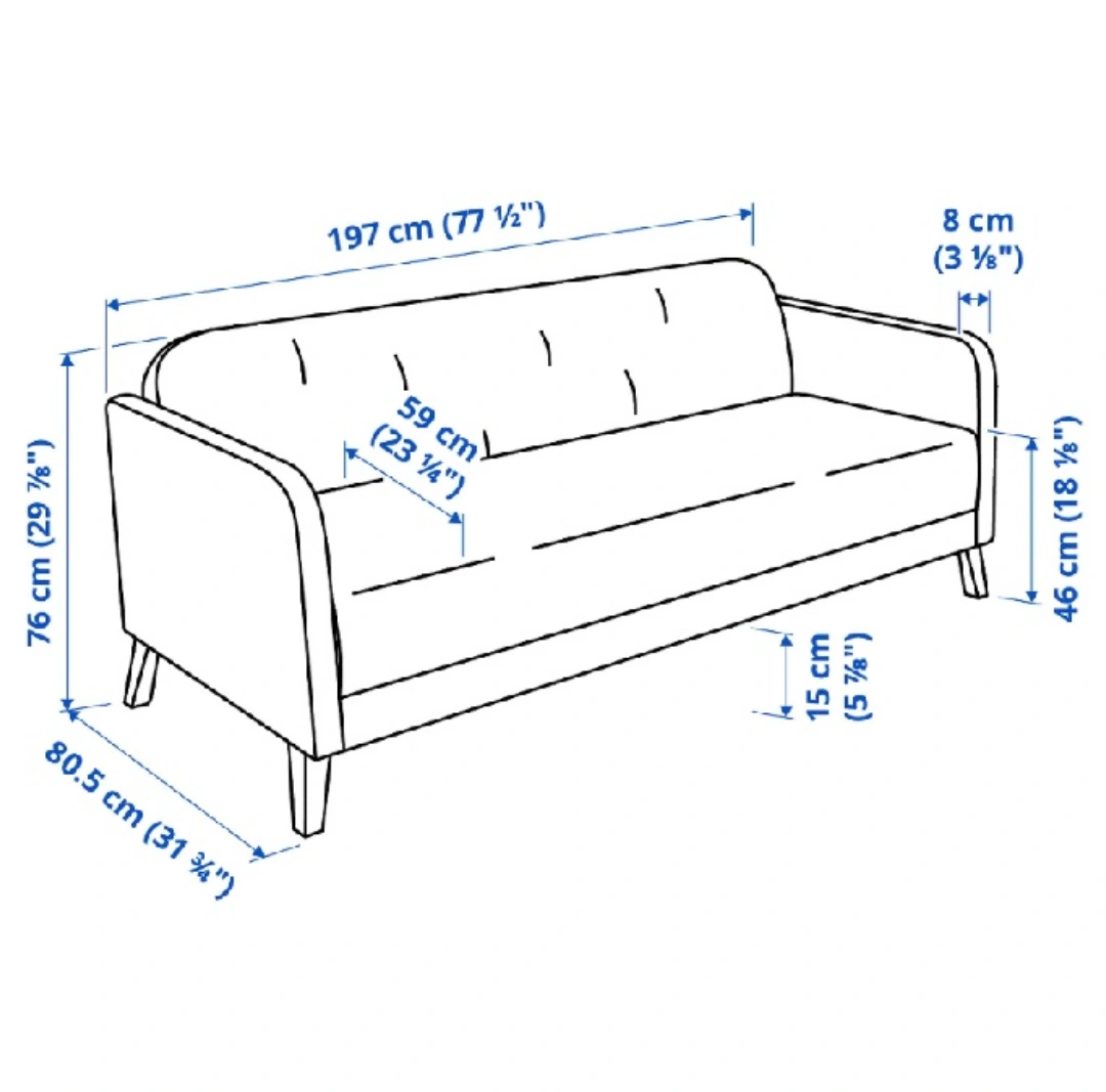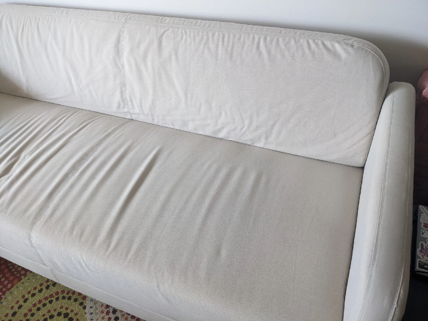 Three seater sofa from IKEA. Had for only a year and does have a few easy to clean stains as pictured. Already disassembled for easy transport. Sofa is in Cranston and is not available for delivery, only pick up!